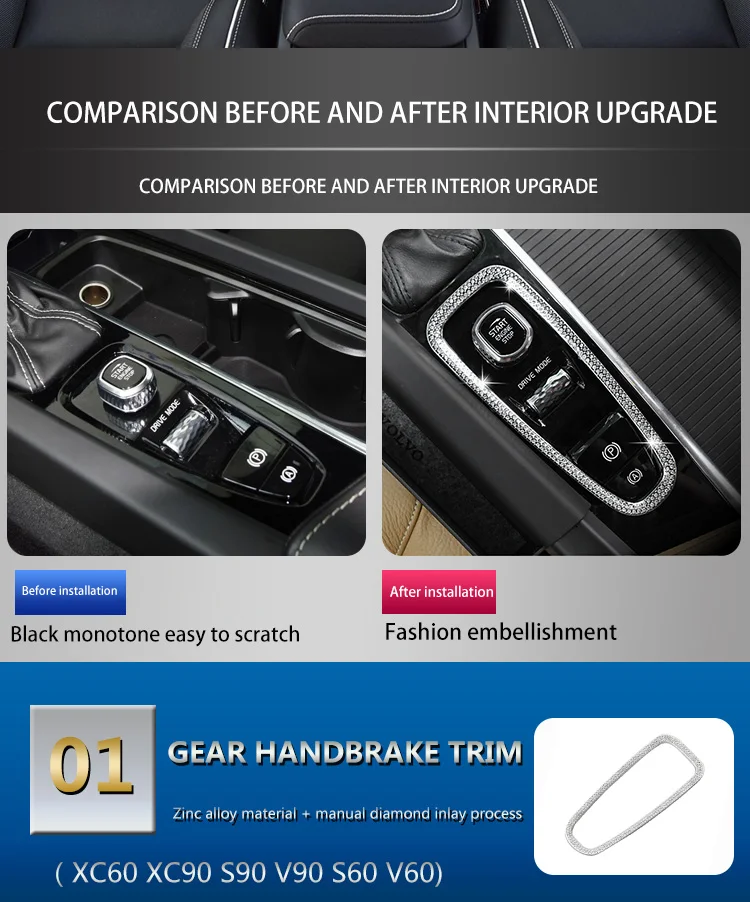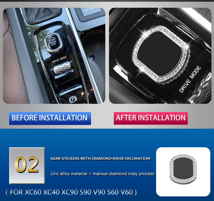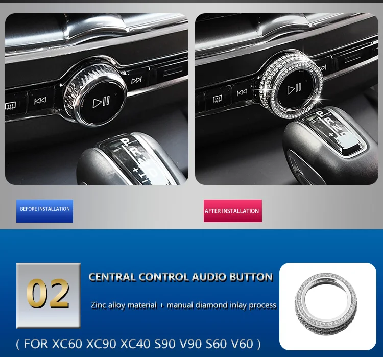 Для volvo xc60 xc90 s90 v90 xc40 s60 v60 внутренняя модификация diamond украшения наклейки для автомобилей Автомобильные аксессуары