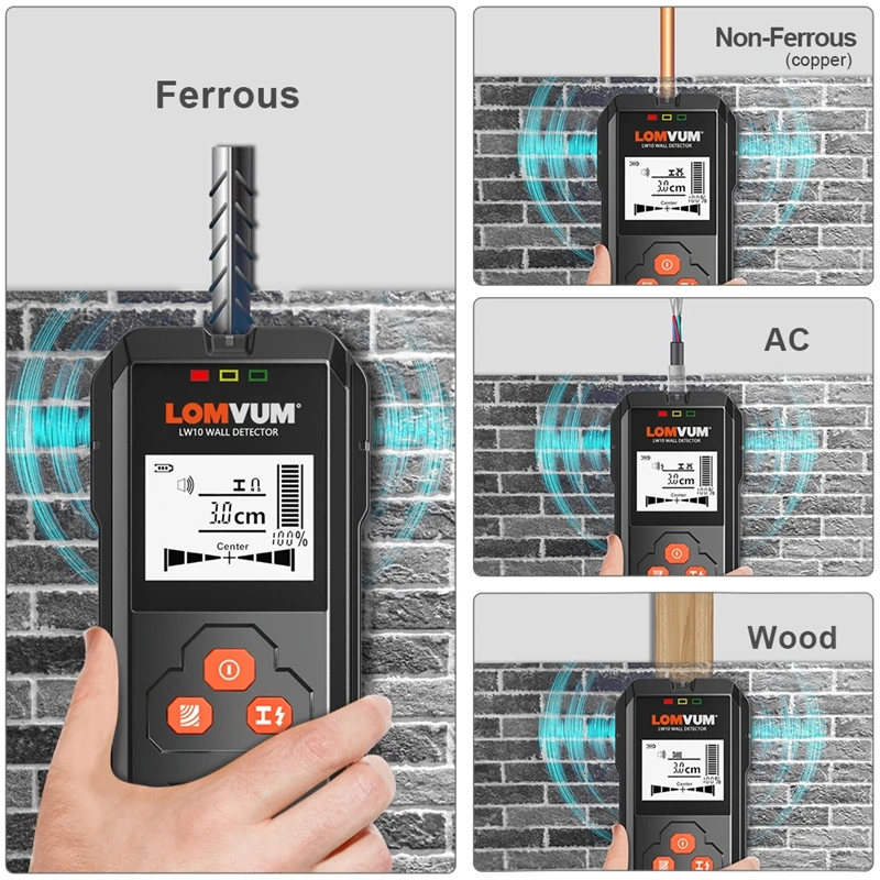 Металлоискатель LOMVUM с подсветкой, кабель искателя проводов, HD-дисплей