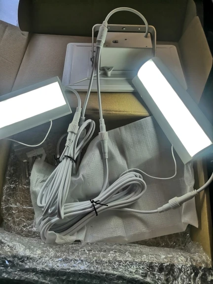 Светильник хороший, но короткие провода. Доставка в Беларусь - это просто ужас!?! 90 дней - это уж слишком. Сам прожектор работает как надо, при выключении одного из светильников, второй светильник горит ярче.