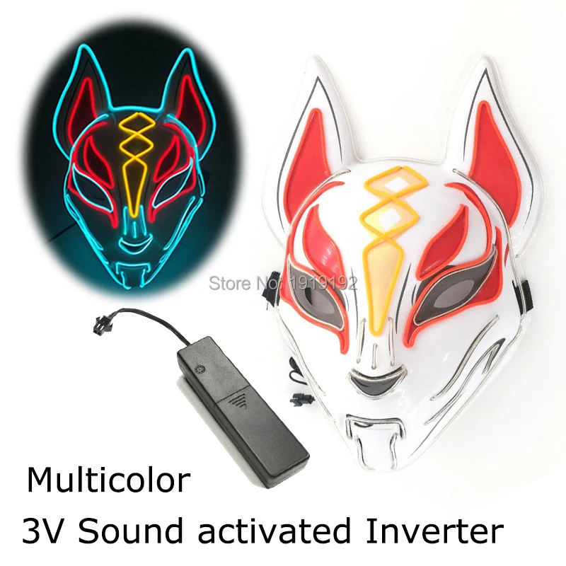 Лидер продаж, светодиодная маска, маска для Хэллоуина, маскарада, светящаяся неоновая маска EL, маска ужасов, маска лисы, аниме, косплей