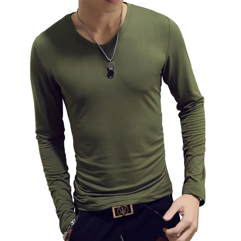 Мужская эластичная футболка с V-образным вырезом и длинным рукавом, 2021