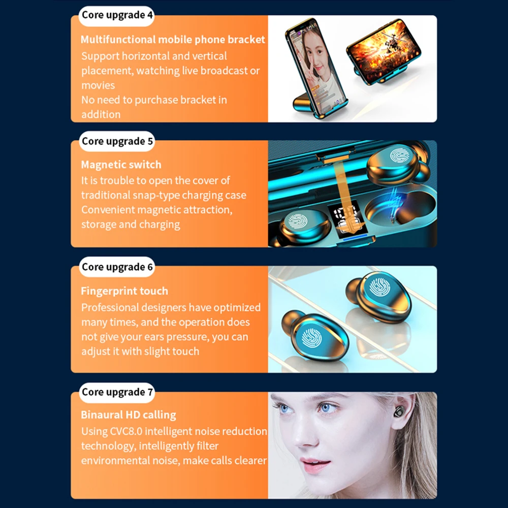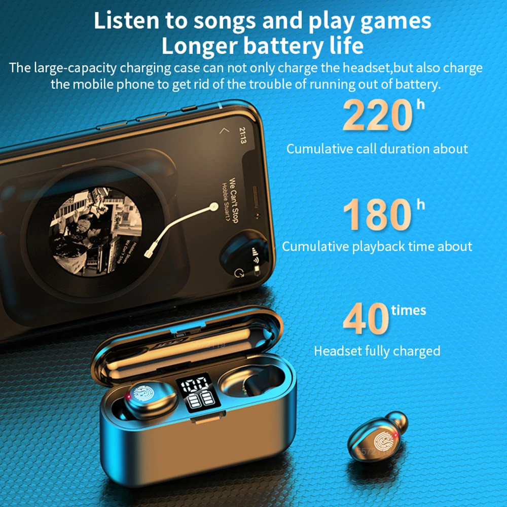 F9TWS Bluetooth V5.0 наушники Беспроводной наушники сенсорный Управ...