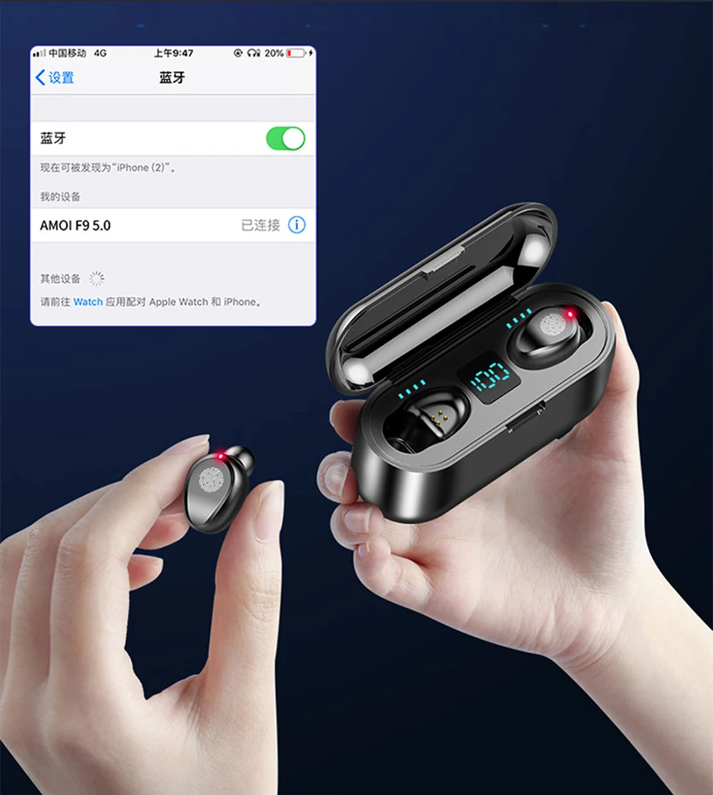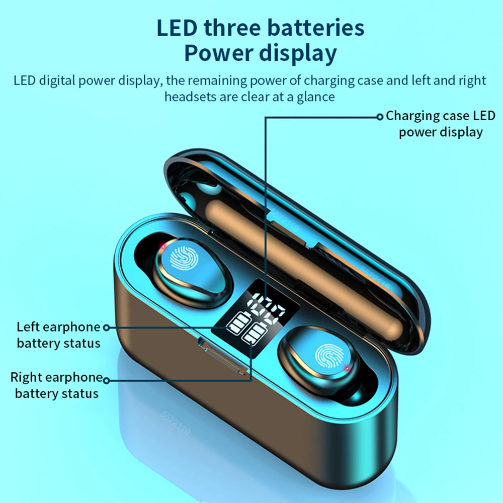 F9 беспроводные стерео наушники Bluetooth-совместимые TWS наушники ...