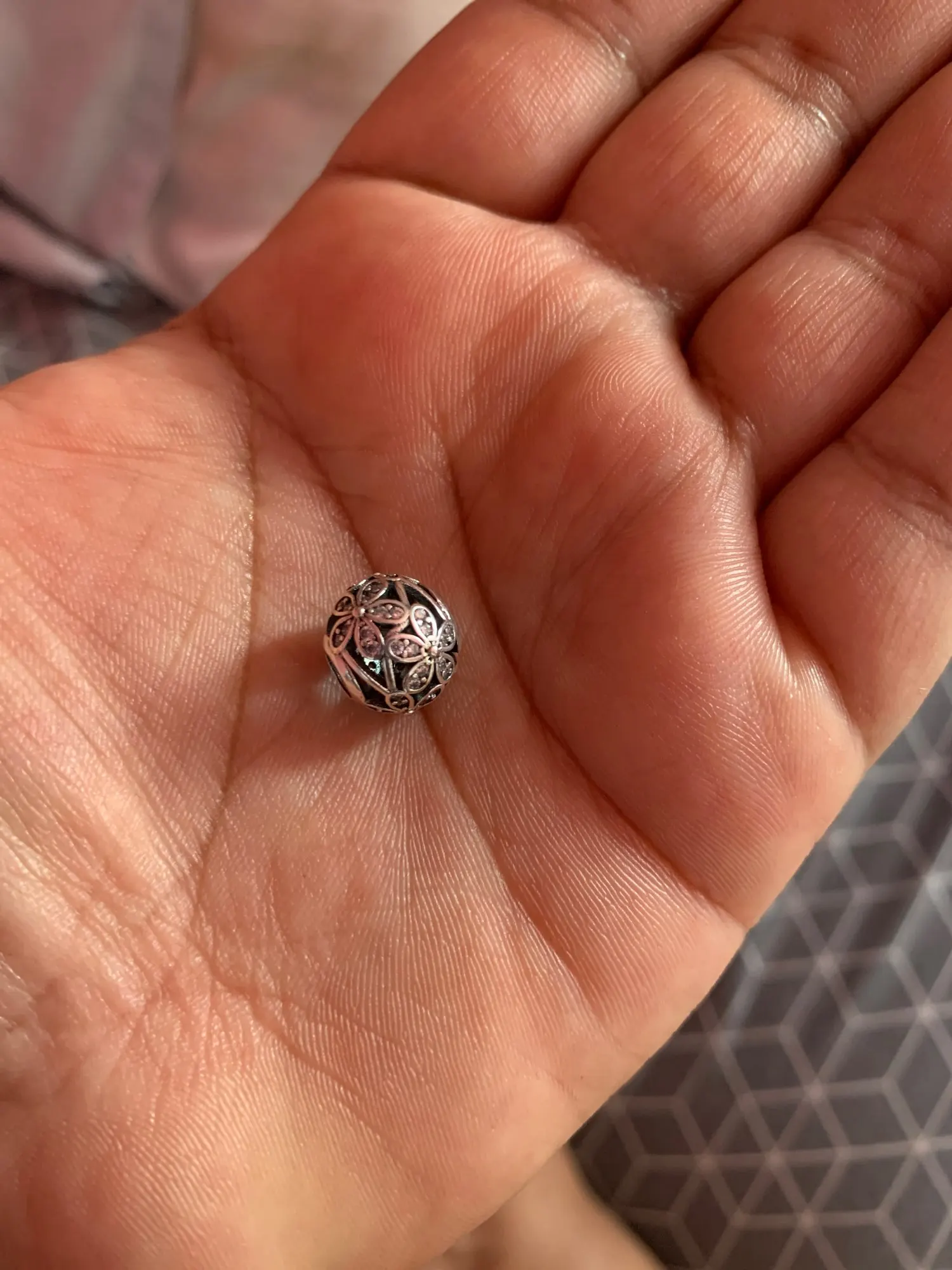 Привет! Я надеюсь, что вы получите мой комментарий. Я из Мексики, и я прибываю раньше, чем ожидалось, в идеальном состоянии с гравировкой "Ale 925" Прекрасный Шарм качества. Важная точка очень мала по сравнению с оригинальным очарованием Пандоры.