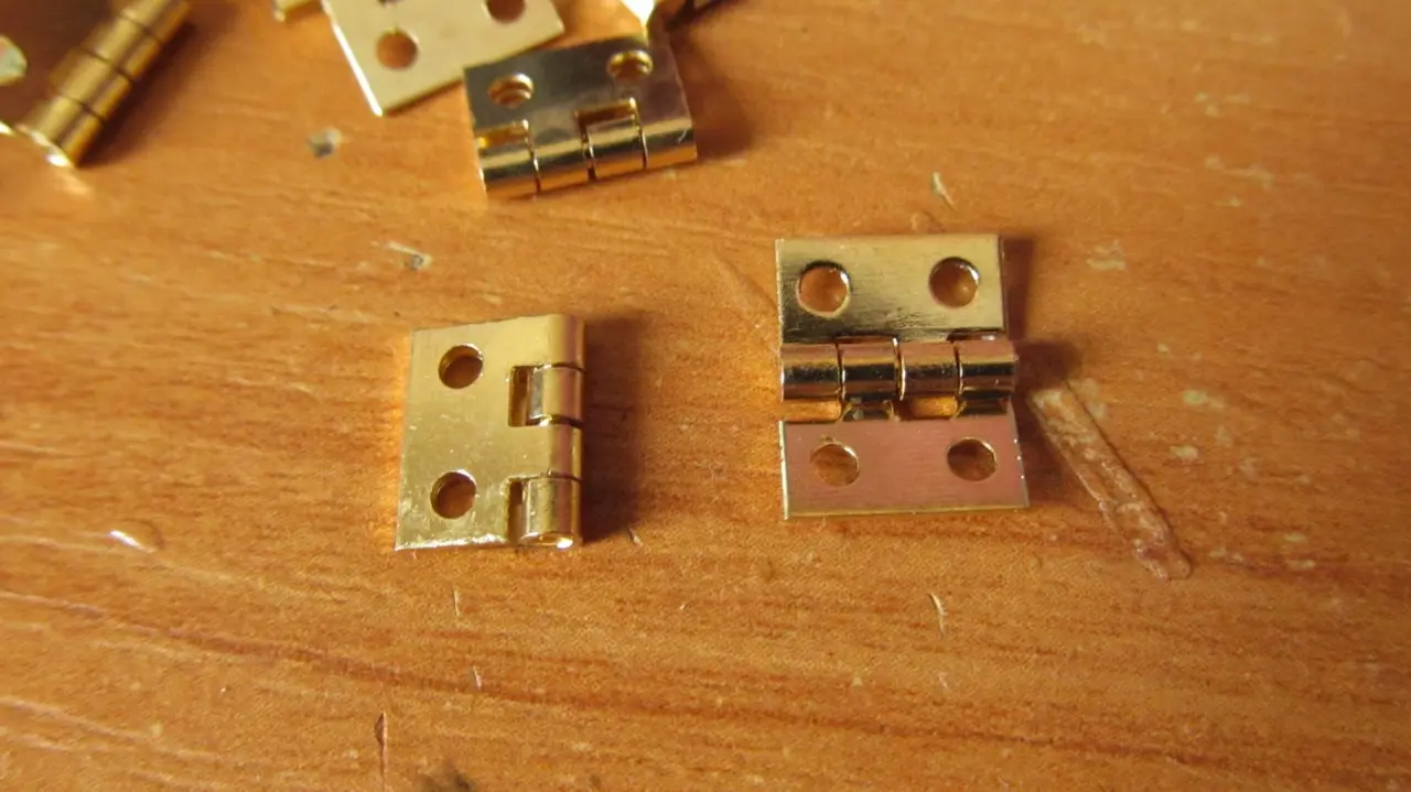 Очень качественные петельки, но очень маленькие. Поставляются без гвоздиков и саморезиков. Подобрать их наверное будет проблема, так как отверстия для их крепления очень маленькие. Попробую приклеить.