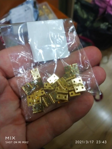 Петли маленькие, очень симпатичные. Некоторые ходят свободно, а некоторые туго. Для мелких подделок самое то. Плохо что нет сразу маленьких шурупчиков даже не знаю как их крепить теперь. Товар пришел за 3-4 недели в сборной посылке. Продавца и товар рекомендую. Кто любит мелкие вещички то это его порадует обязательно.