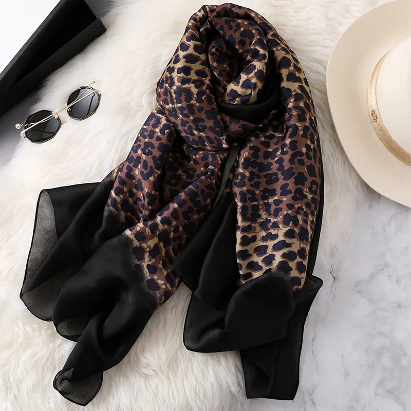 Шарф женский Шелковый, с леопардовым принтом, зимний, 2021