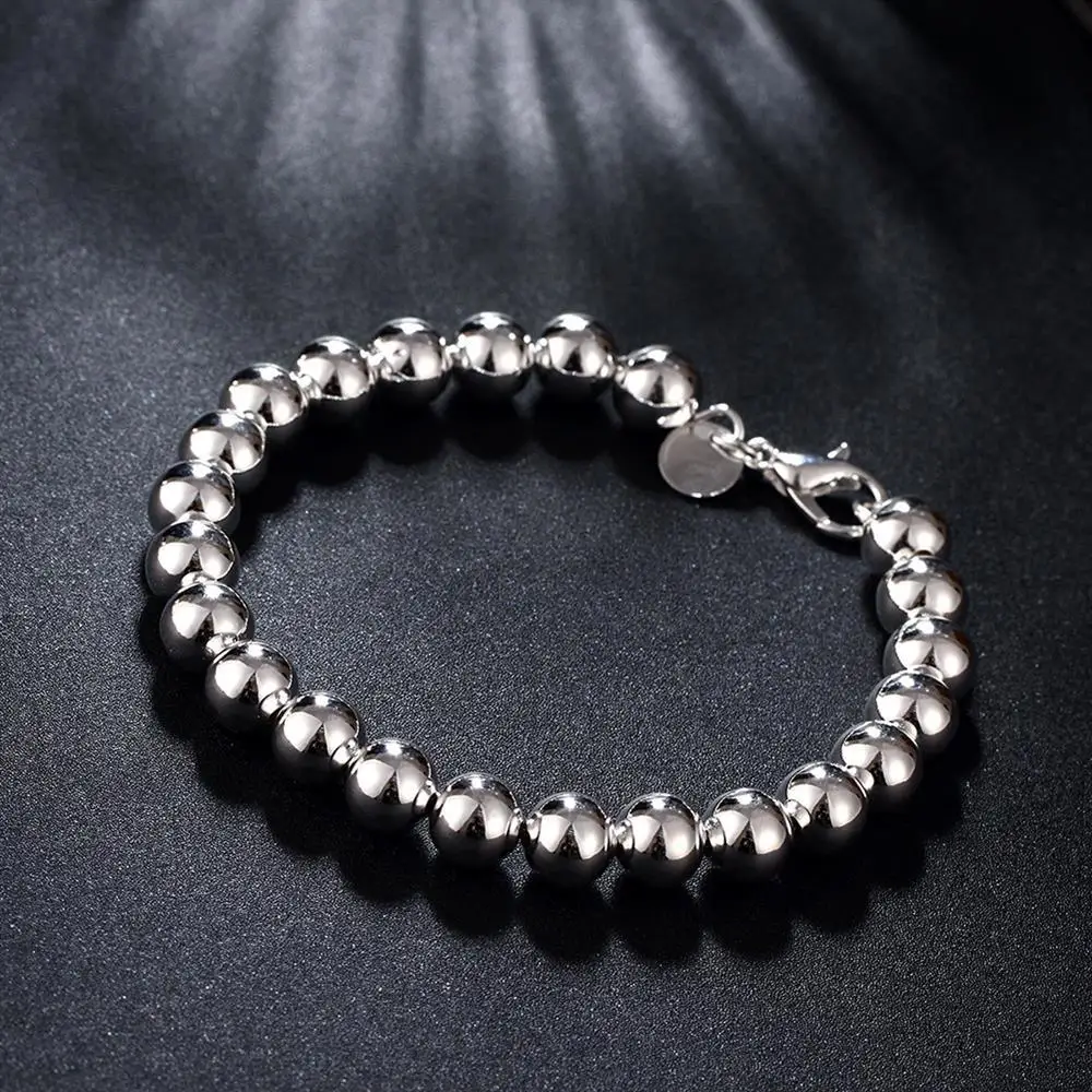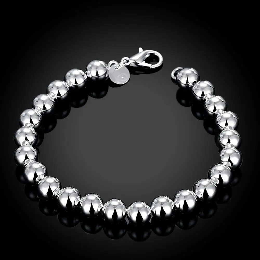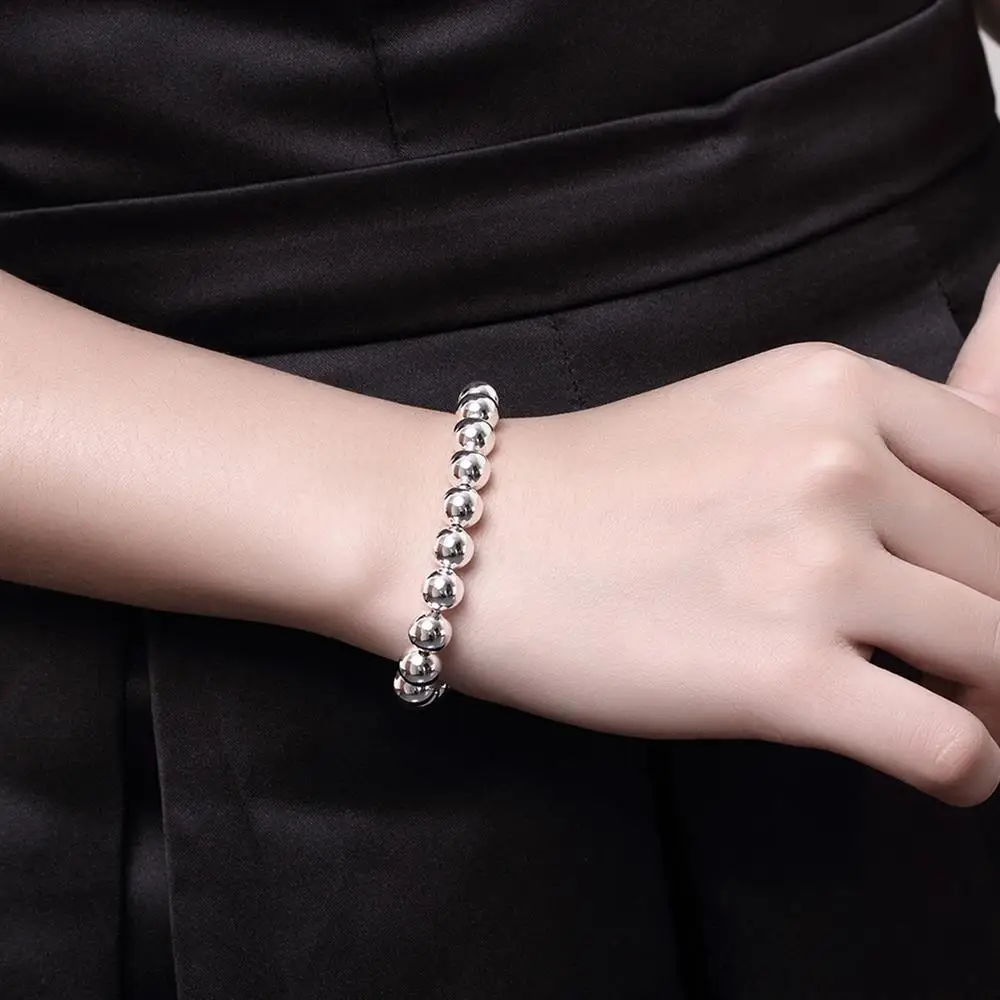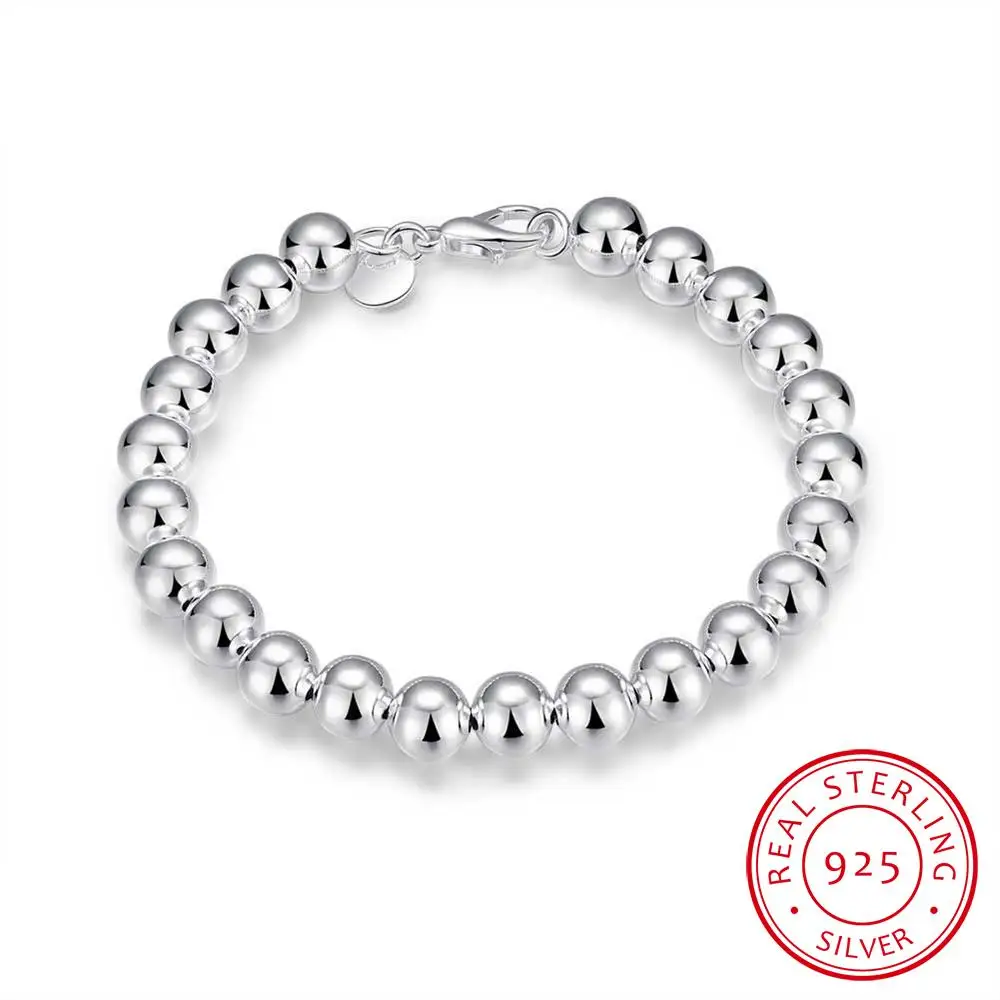 Браслет из серебра 100% пробы, 925 пробы, с бусинами длиной 0,8 см, 21 см, для девочек-подростков, DA155