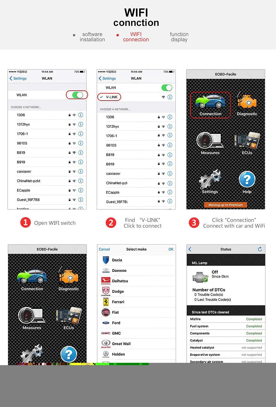 Для IOS:EOBD Facile/Dash Command/OBD Car Doctor