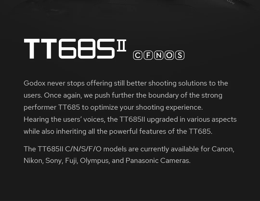 Вспышка Godox TT685II TT685C TT685N TT685S TT685F TT685O TTL HSS для камеры Canon Nikon Sony Fuji Olympus