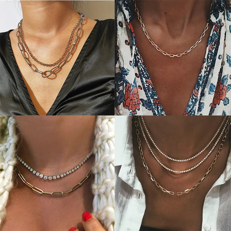 YWZIXLN богемный винтажный геометрический чокер и Стразы цепи модные ожерелья ювелирные изделия для женщин элегантные аксессуары N087