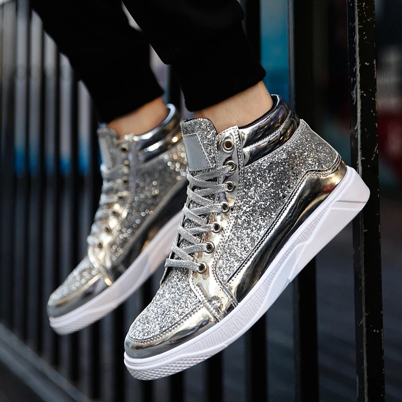 Мужская Высокая обувь с блестками; Высококачественные кроссовки; Мужская кожаная повседневная обувь; Мужские черные кроссовки; Модные крутые кроссовки серебристого и золотого цвета