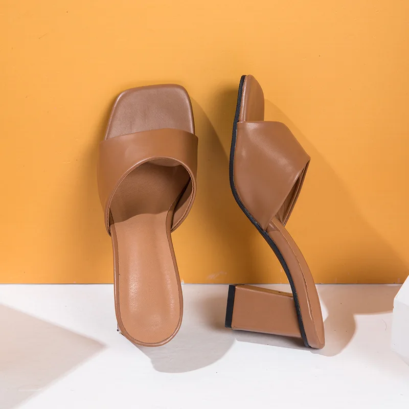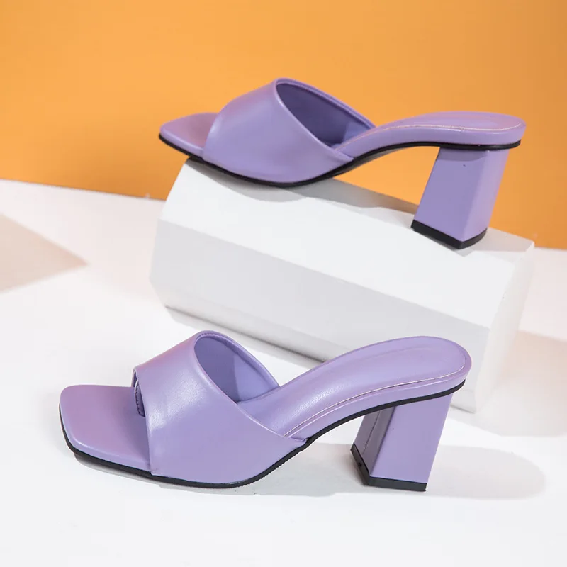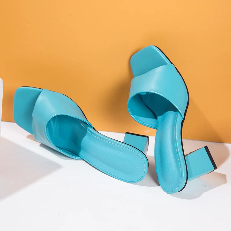 Шлепанцы женские, летние, с квадратным носком, туфли без пяток на высоких каблуках, 2021