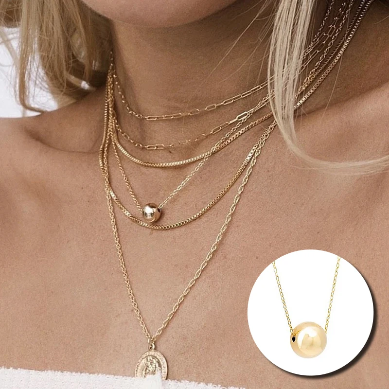 AIDE милый маленький круглый бусами нашитыми на цепи ожерелье для ж...