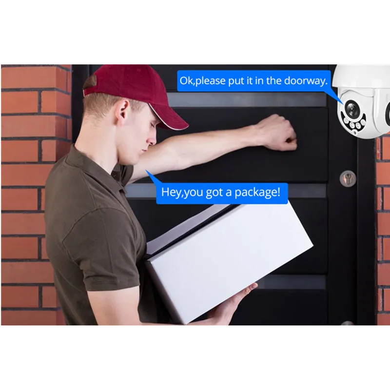 Hiseeu наружная камера безопасности wifi имеет двухсторонний аудио поток через встроенный микрофон и динамик. Независимо от того, как далеко вы можете, вы можете поговорить с человеком доставки, как справиться с вашей посылка.
