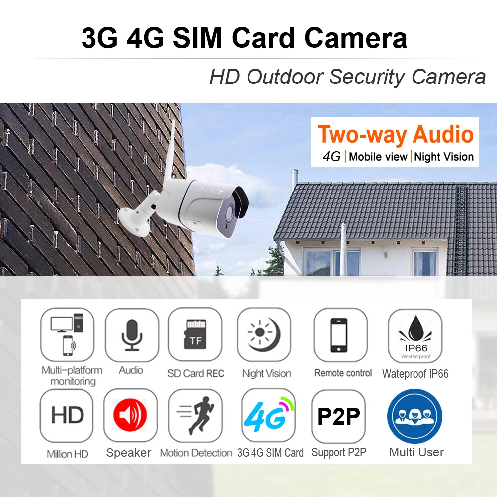 Камера видеонаблюдения HD, водонепроницаемая, с поддержкой 4G SIM-карт, 1080 пикселей, с функцией записи аудио, Wi-Fi, с инфракрасным ночным видением, беспроводная, для дома