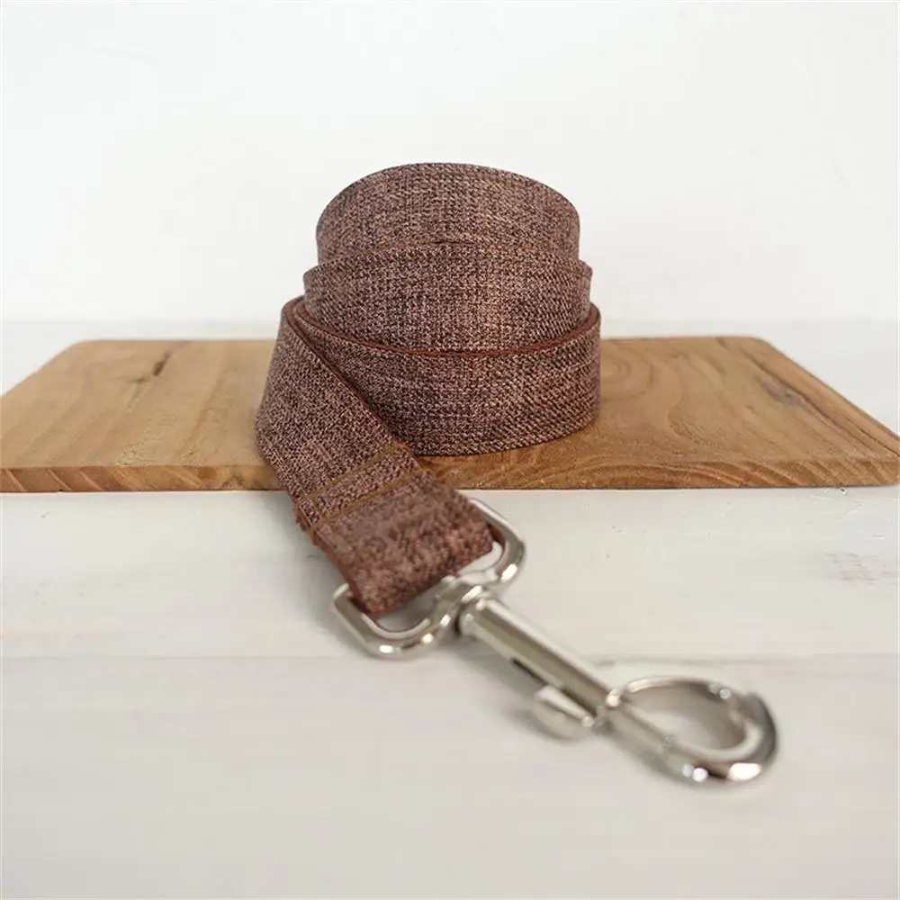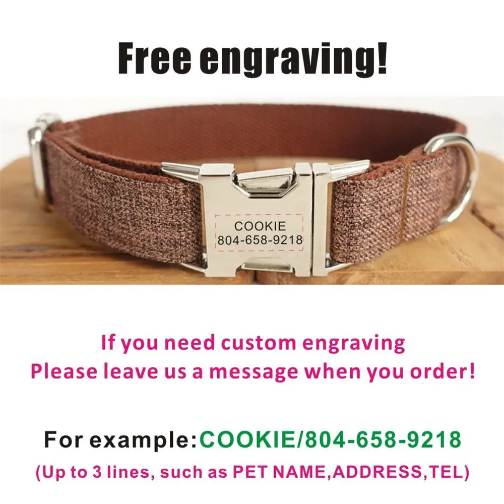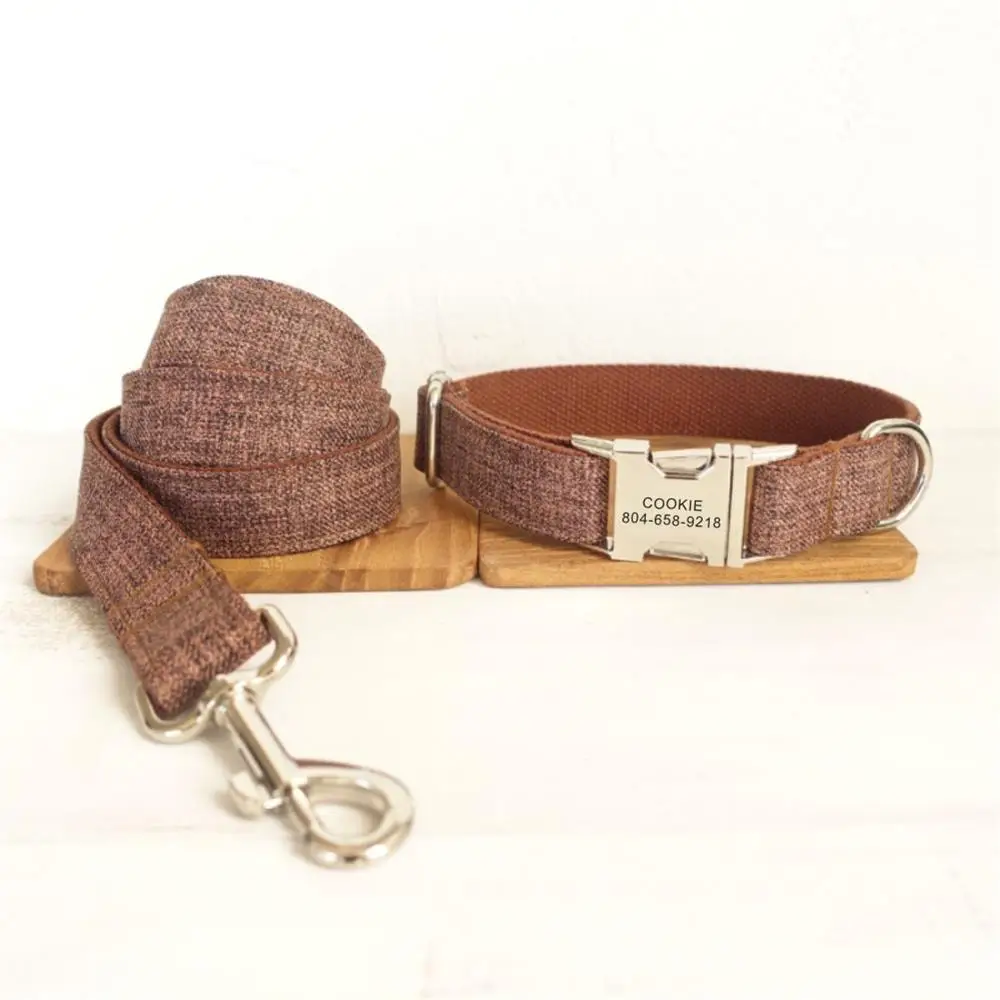 Персонализированный ошейник для домашних животных, индивидуальная именная табличка ID Tag, регулируемый коричневый костюм из льняного волокна, ошейники для собак и кошек поводок