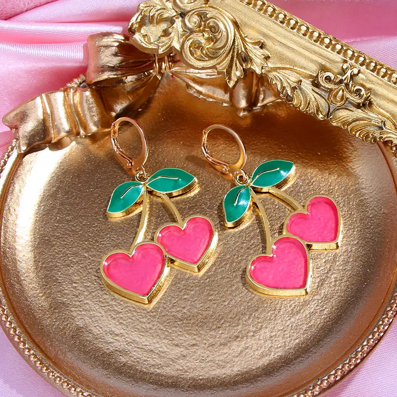 Женские серьги-подвески BYNOUCK, из металла, с разноцветными вишнями