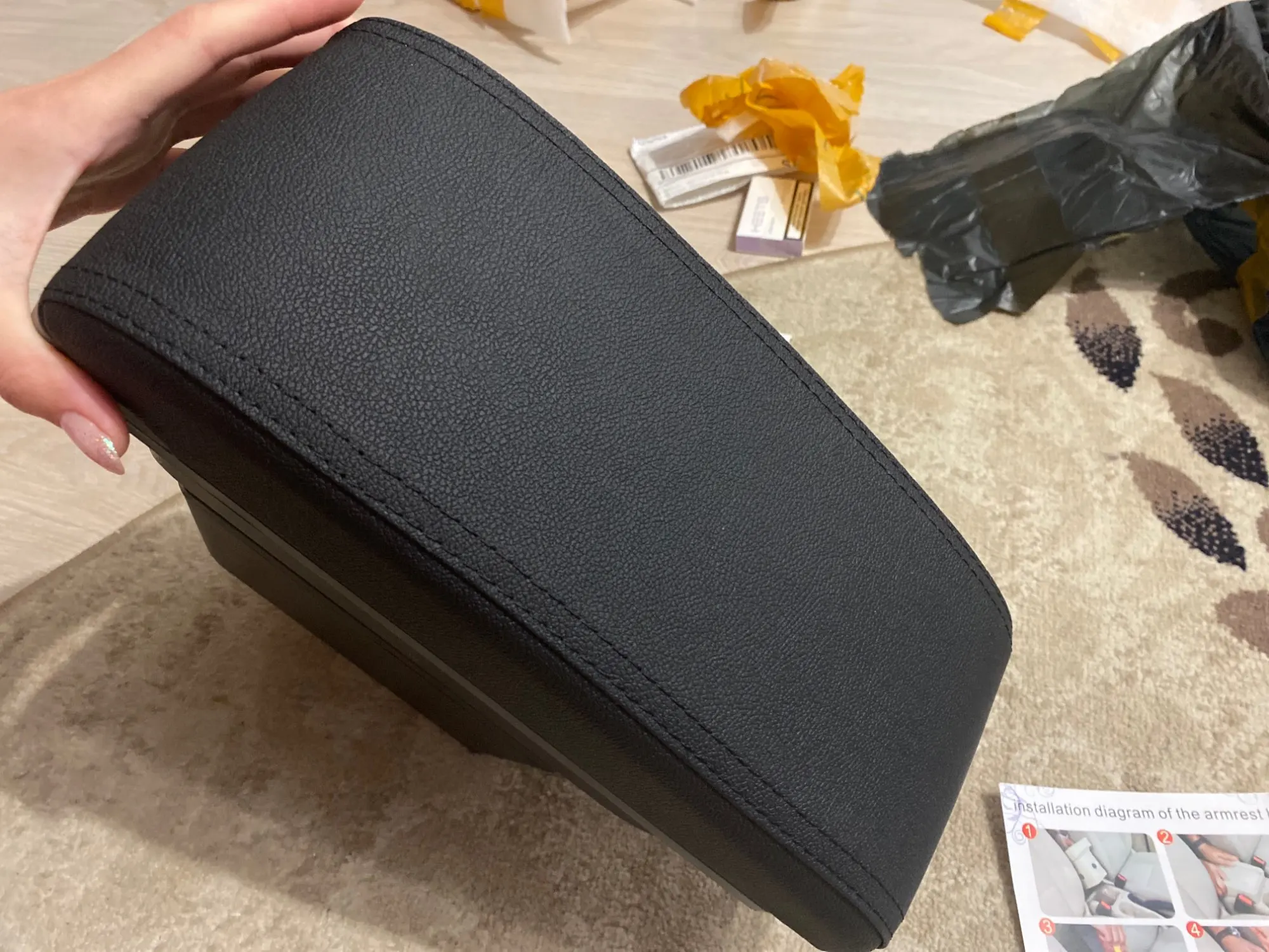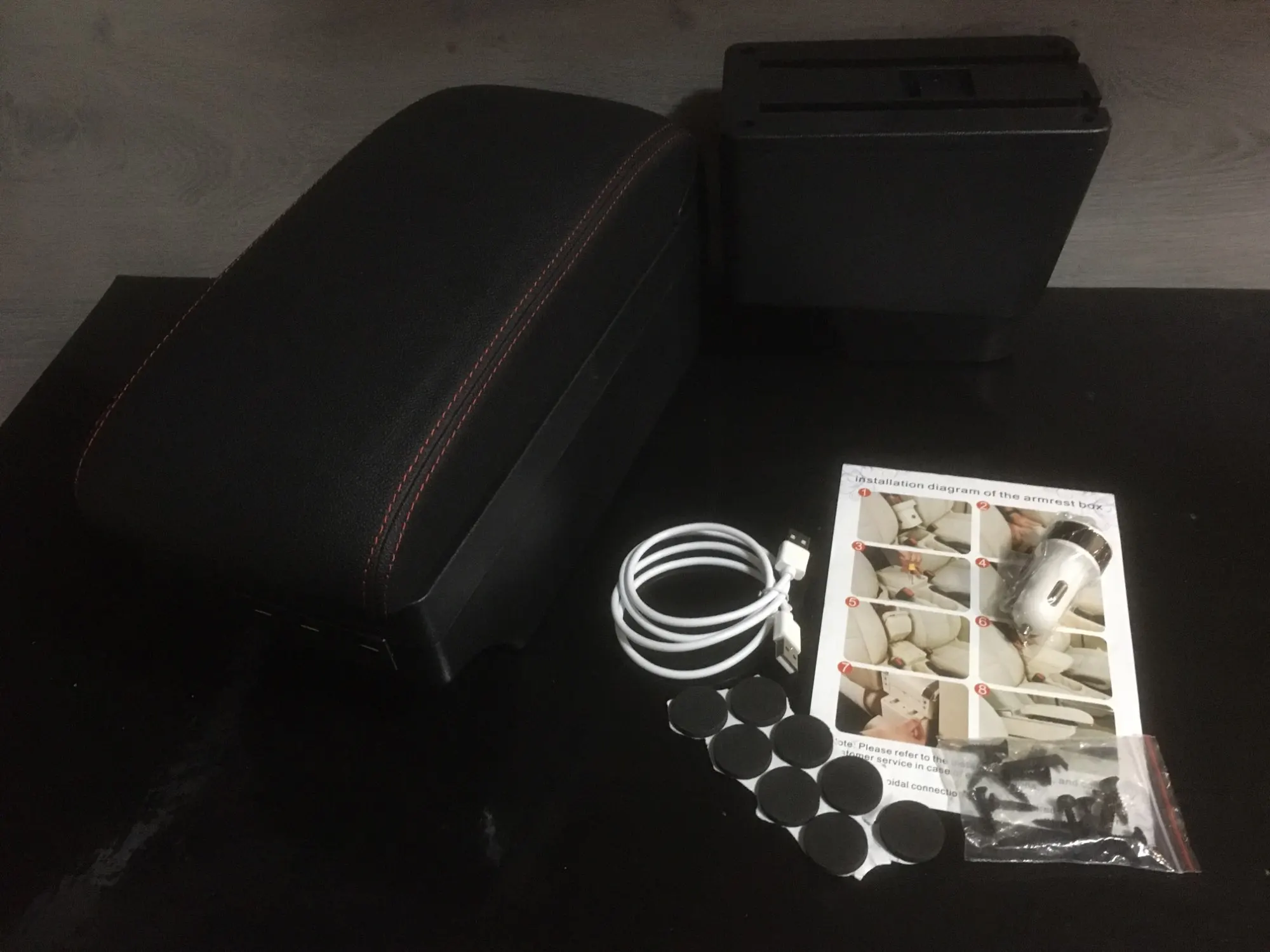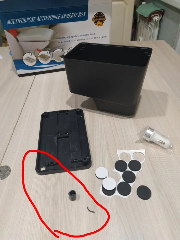 Отличный подлокотник- материал верха тактильно очень приятный. Качество пластика такое себе, плюс он ещё и неприятно пахнет, но это уже мелочи. В комплекте было 12 шурупов и тонкий кусочек ткани для отсека внутри