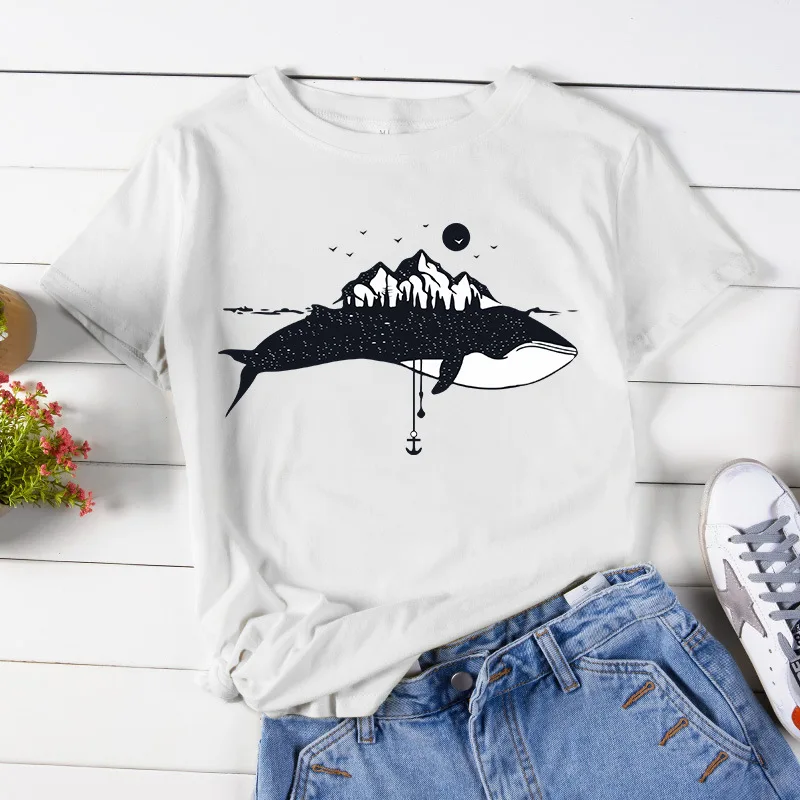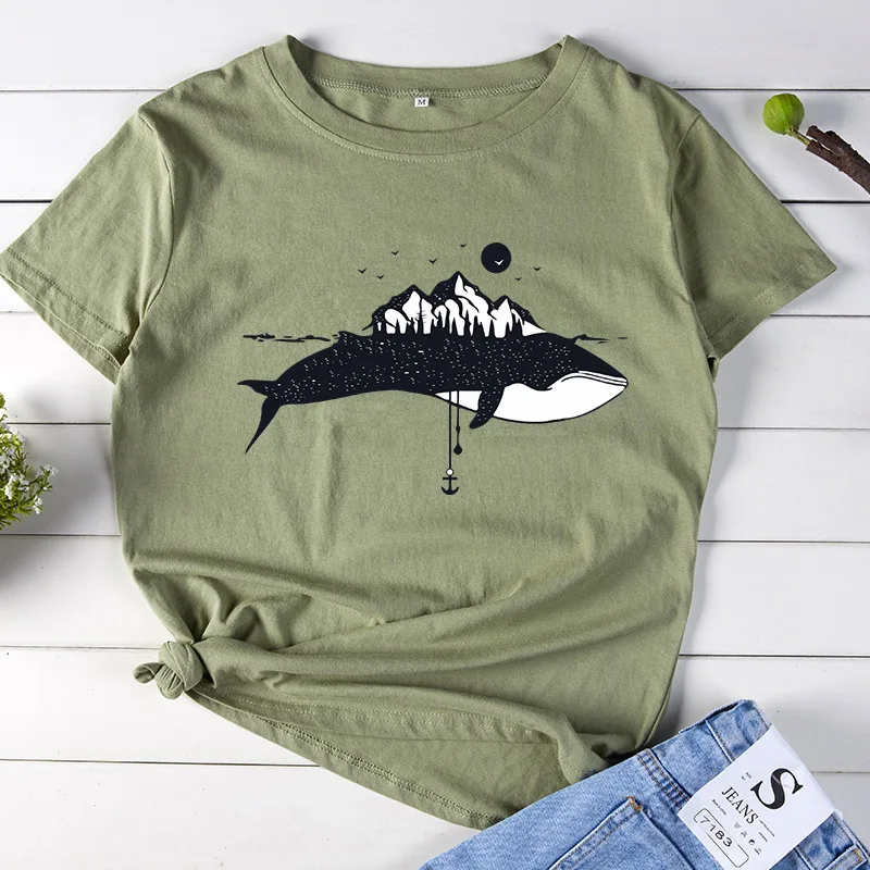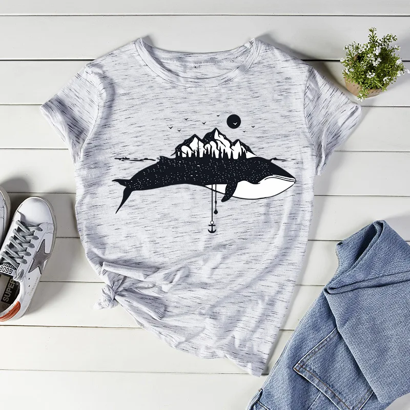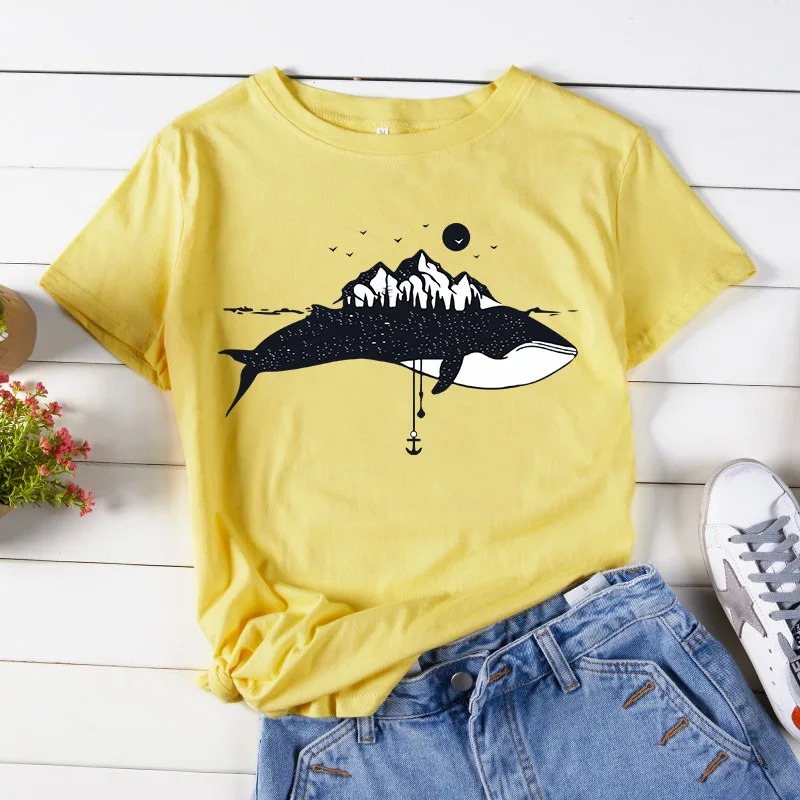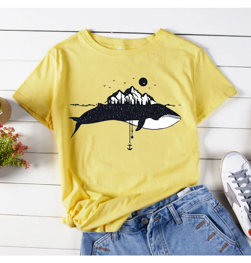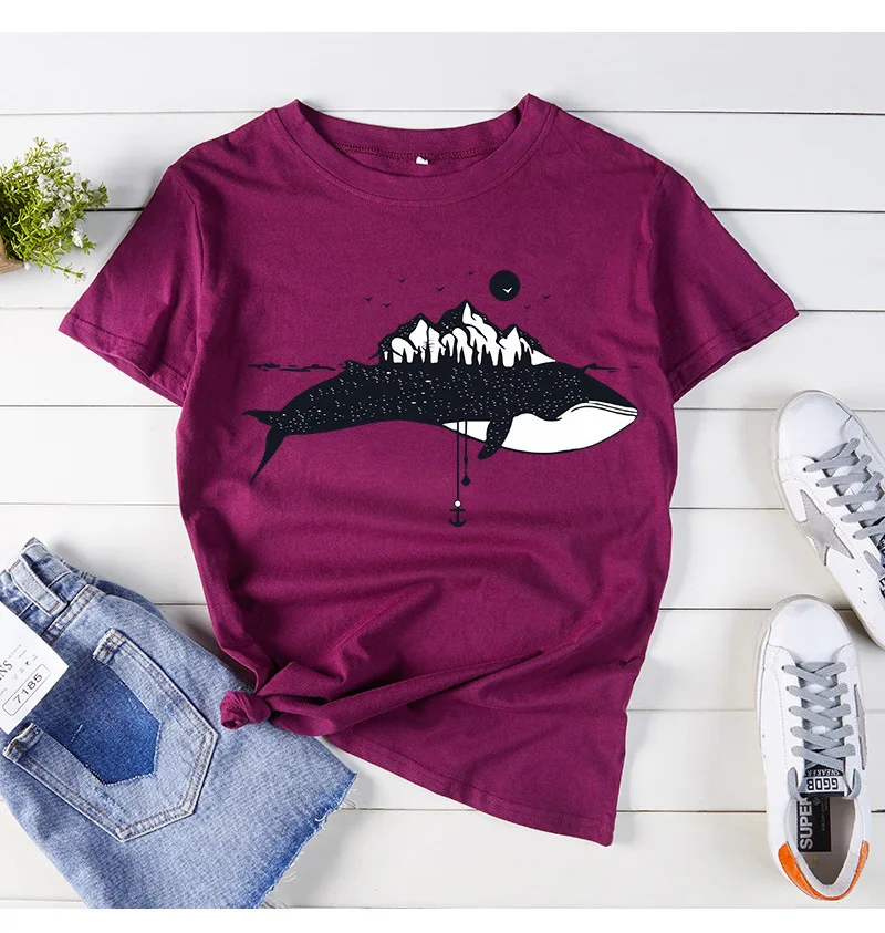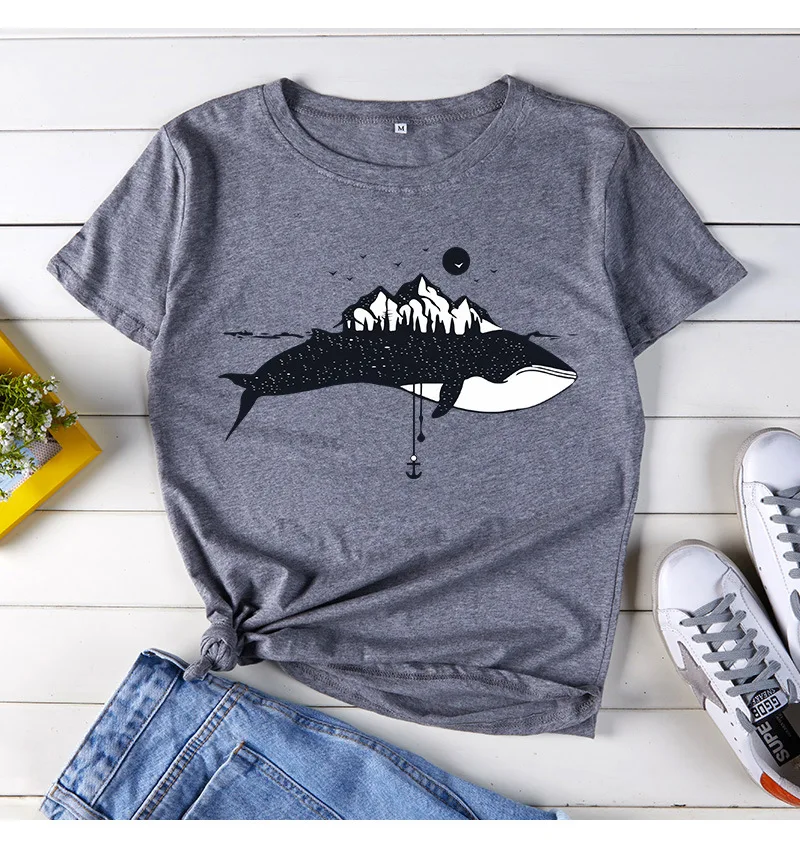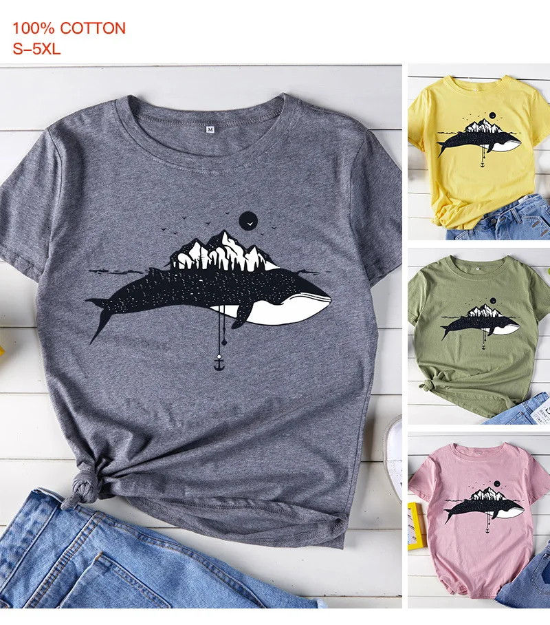 Футболка JCGO Женская хлопковая с круглым вырезом, Модный повседневный топ с забавным Китом, с коротким рукавом, большие размеры 4XL 5XL, на лето