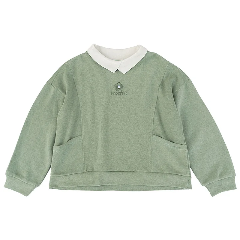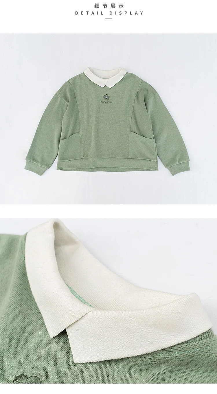 Свитер в Корейском стиле для девочек; Зеленый светильник; Топы с цветочной вышивкой; Коллекция 2022 года; Одежда для девочек; Сезон весна-осень; Для детей 8, 10, 12, 13, 14 лет