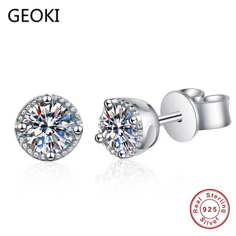 Серьги Geoki круглые Идеальной огранки, 0,3, серьги-гвоздики с муассанитом, 925 пробы, серебряные серьги с бриллиантами, для девочек
