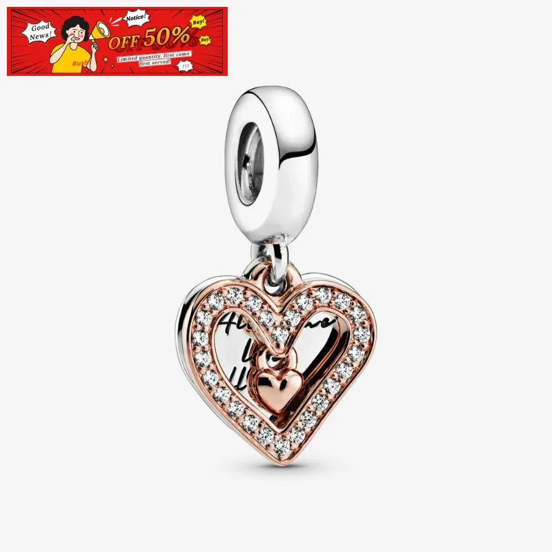 Подарок на день Святого Валентина 925 стерлингового серебра от руки в форме сердца с позолоченным кольцом, подходят к оригинальным браслетам Pandora, сделай сам, для женщин, модное ювелирное изделие