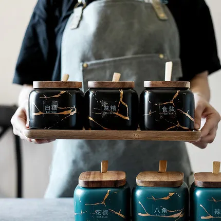 Креативный набор из керамического резервуара для приправ в скандинавском стиле с золотым мрамором, домашний кухонный шейкер для соли, Организация хранения, контейнер для еды