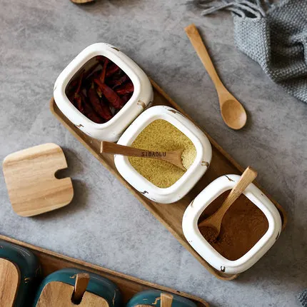 Керамический набор баков для приправ в скандинавском стиле, деревян...