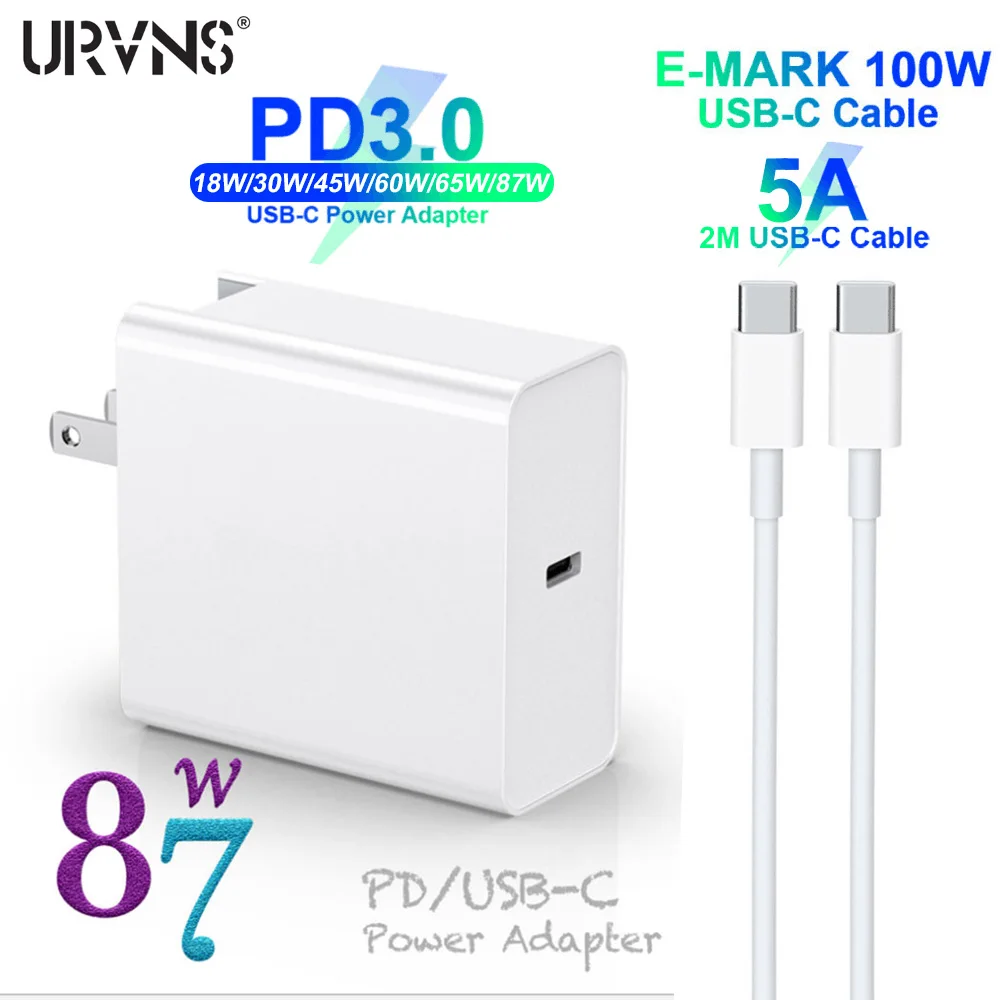 Устройство для быстрой зарядки URVNS, 87 Вт, USB C PD 3,0, адаптер питания для ноутбука, для Macbook Air Pro 15 16 iPad iPhone HP Huawei Samsung