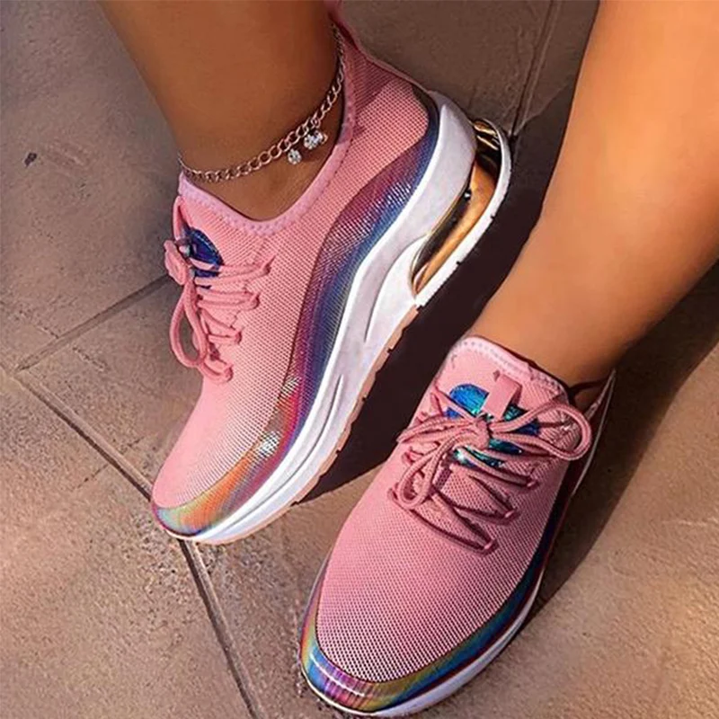 Женские кроссовки на шнуровке, повседневные сетчатые, весенне-осенние, дышащие, удобные, женские, вулканизированные, 2020, размера плюс