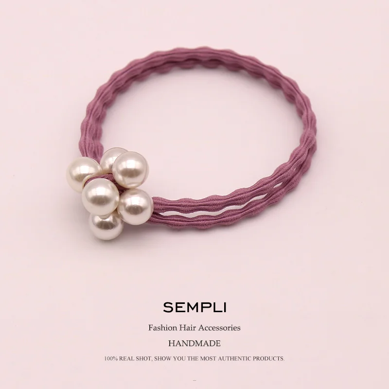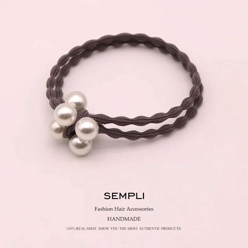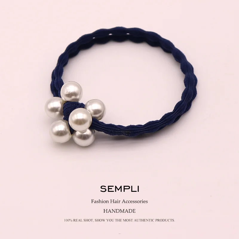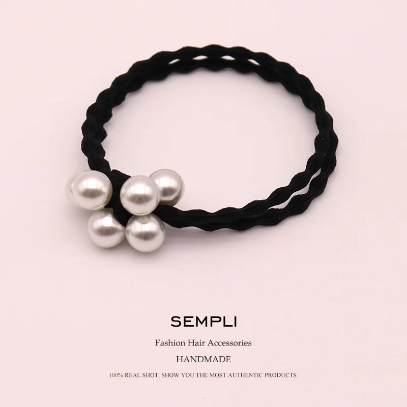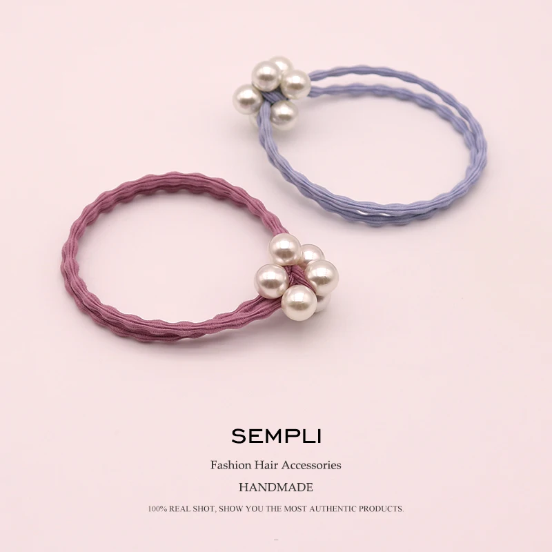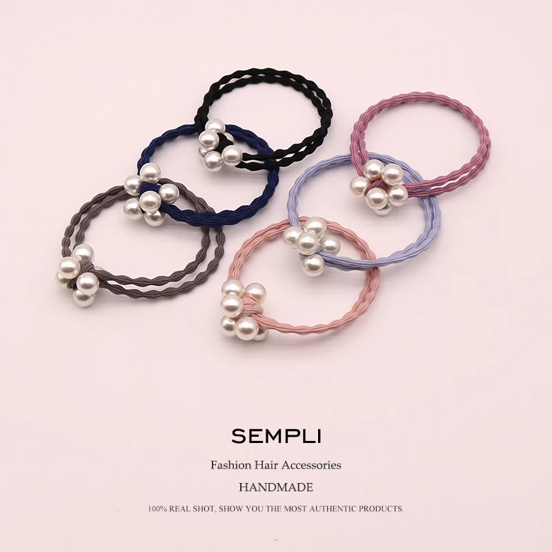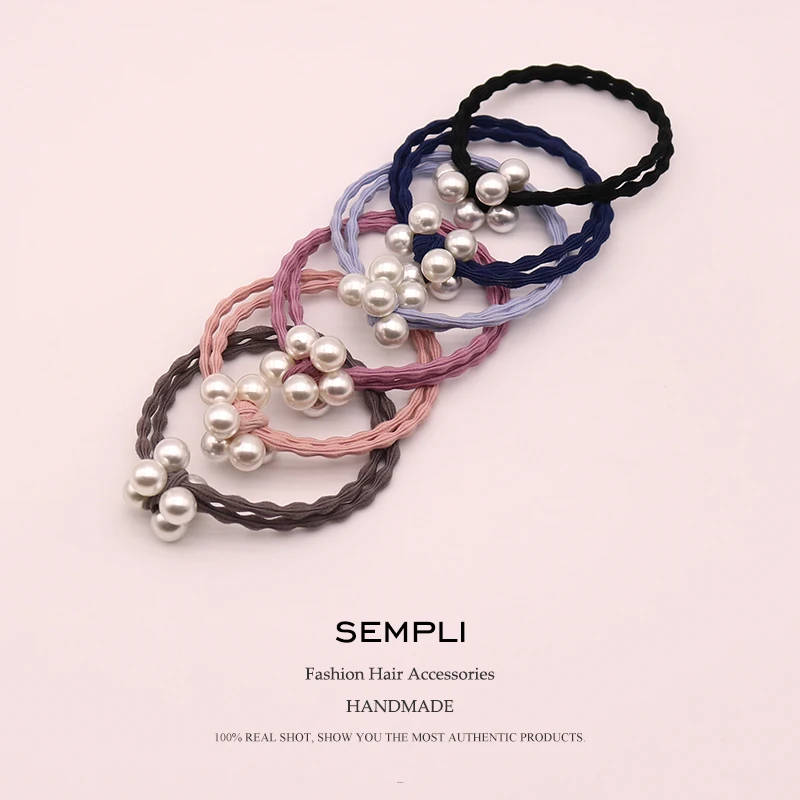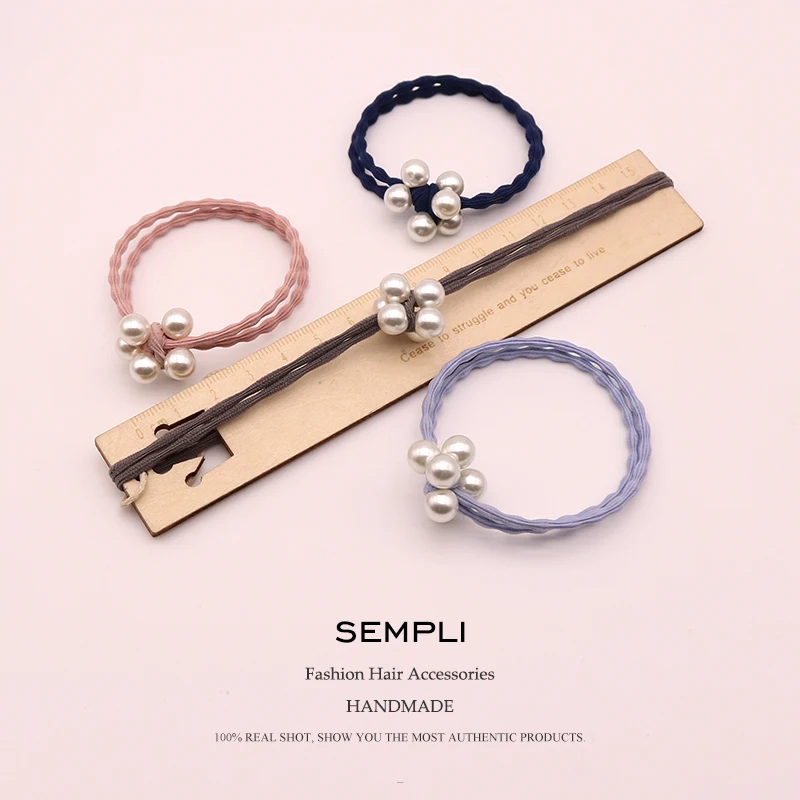 Резинки для волос Sempli для девочек, нейлоновые эластичные зажимы для волос ручной работы, с бантом и жемчужинами, диадема, цветочные аксессуары