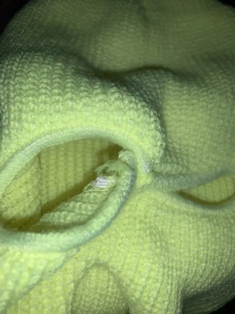 Маска приятная на ощуп. Сильно не пахнет, по материалу, как будто сшита крючком, как домашние носки, но не очень крепкое сшитие на уровне носа.