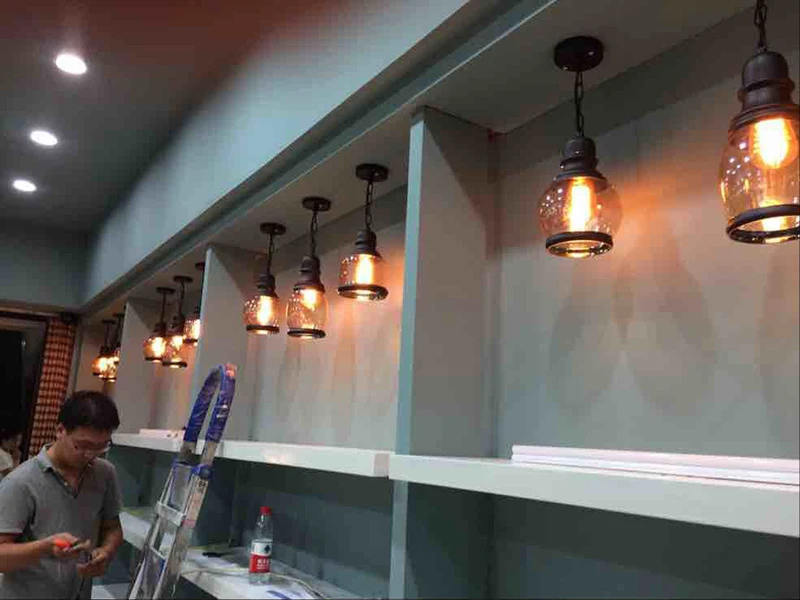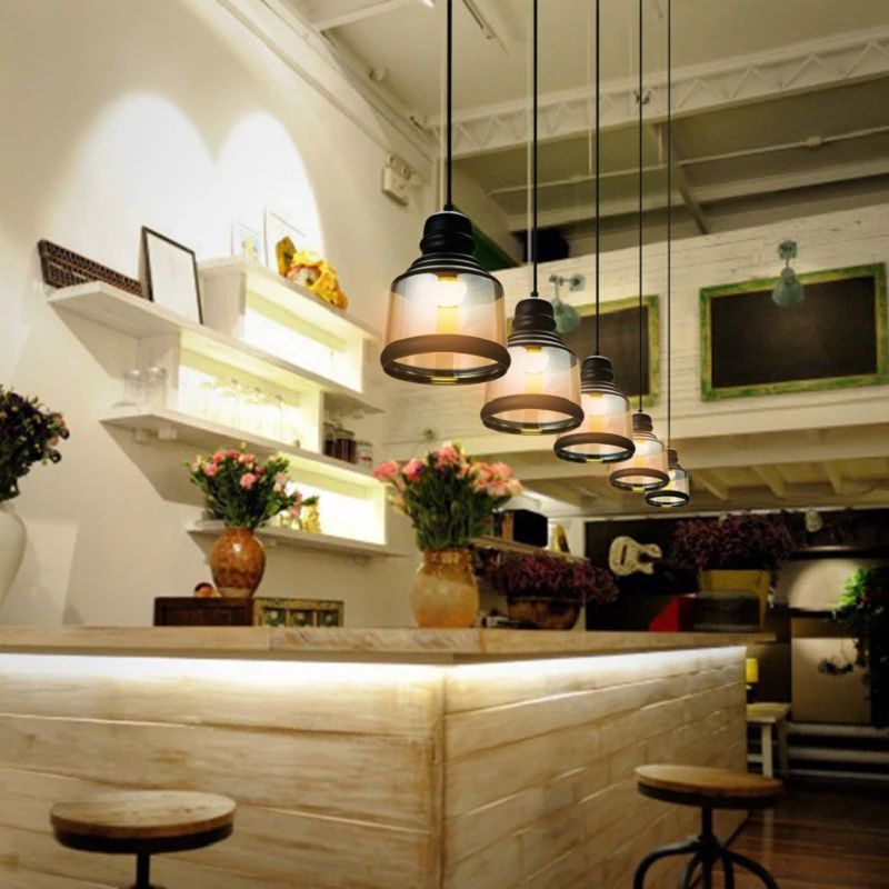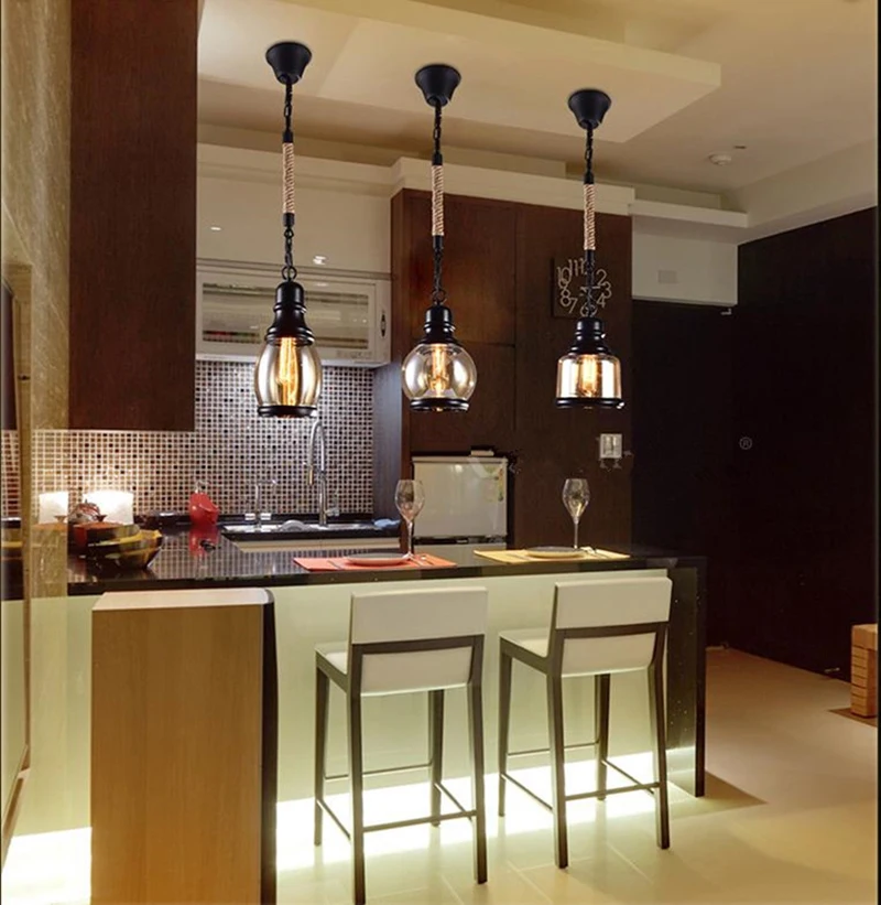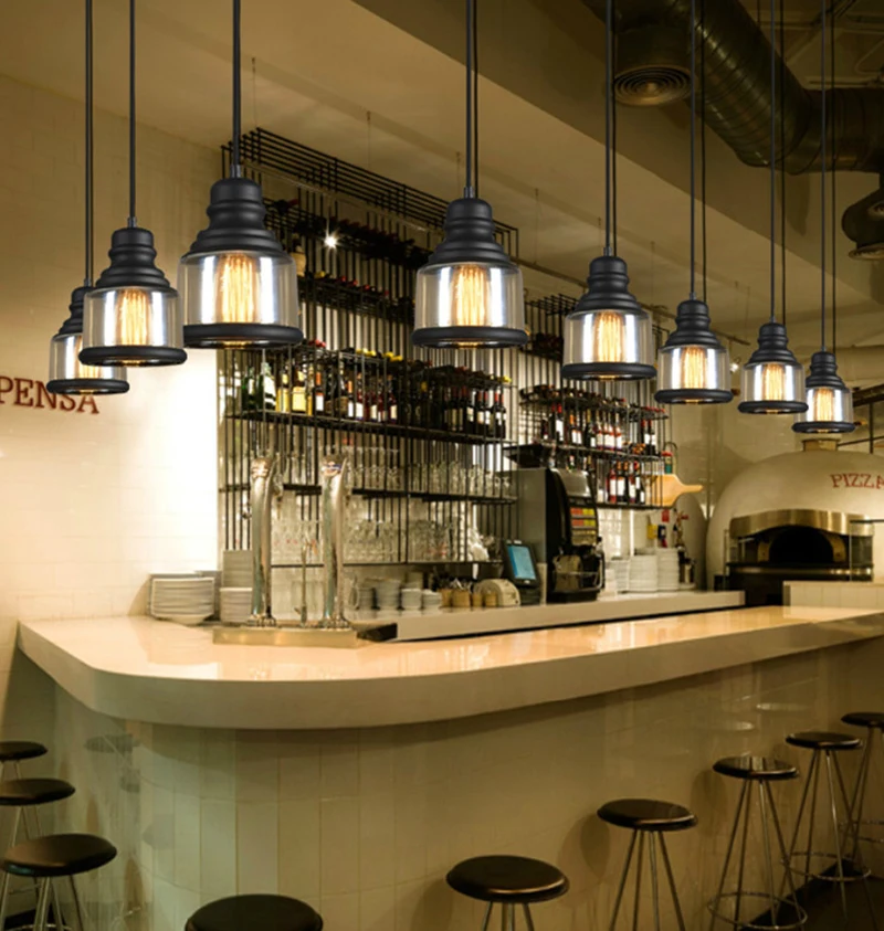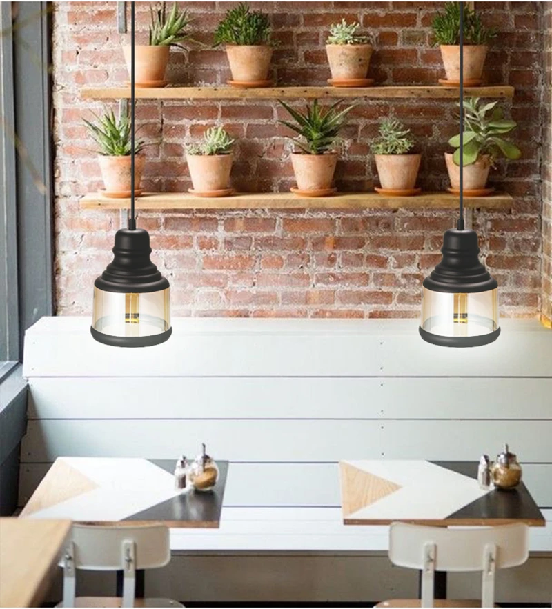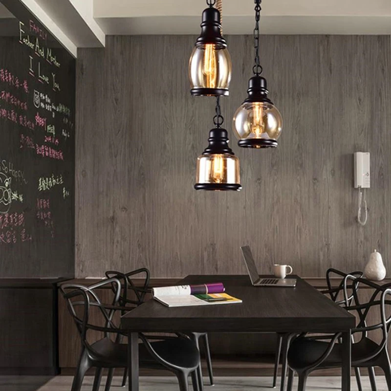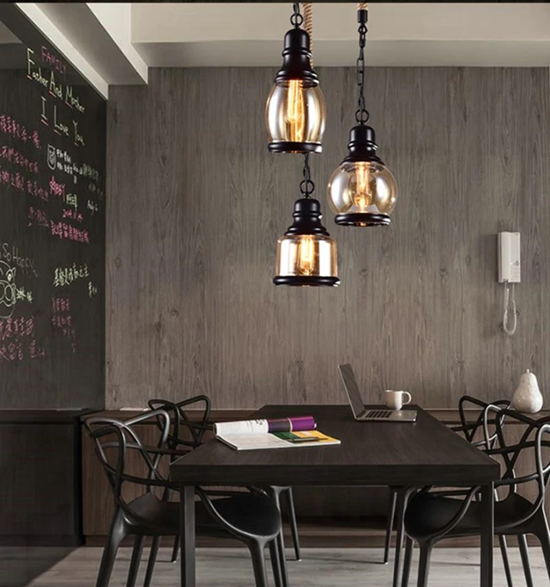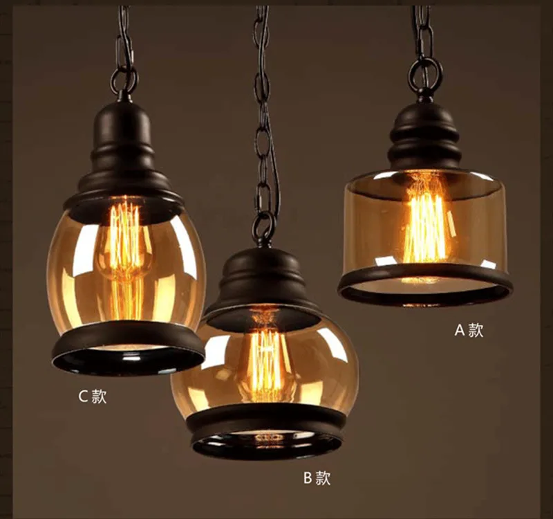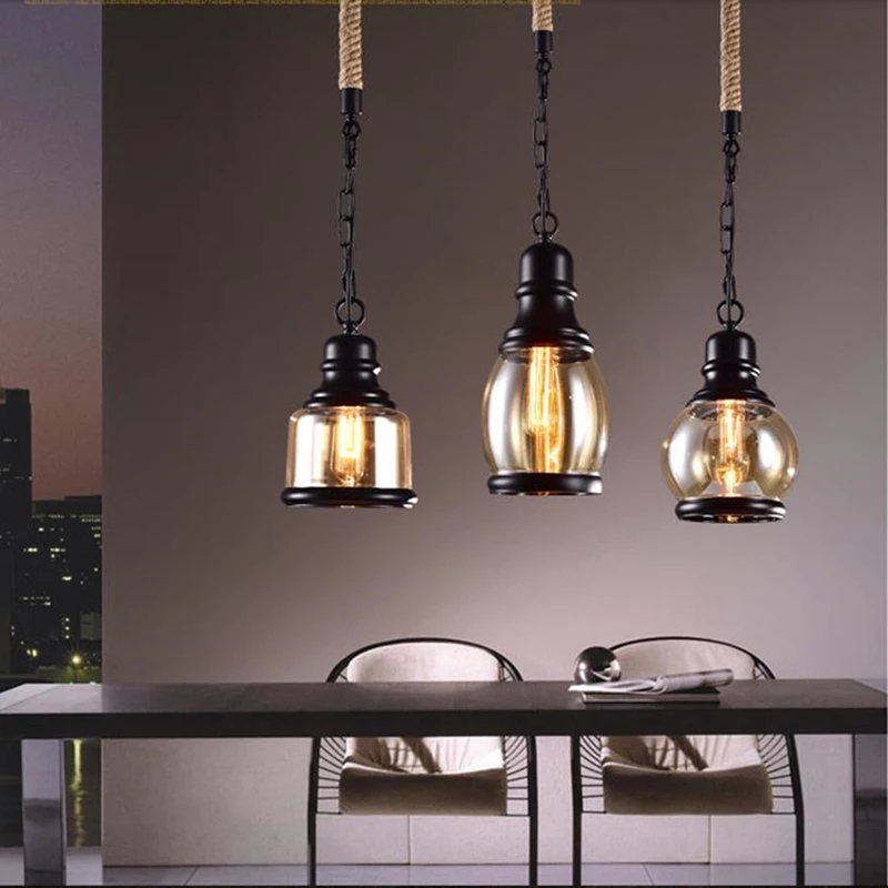 Винтажное Янтарное стекло подвесной светильник в виде бутылки вина, промышленный стиль, Светодиодная лампа E27, железный подвесной светильник для бара, ресторана, кофейни
