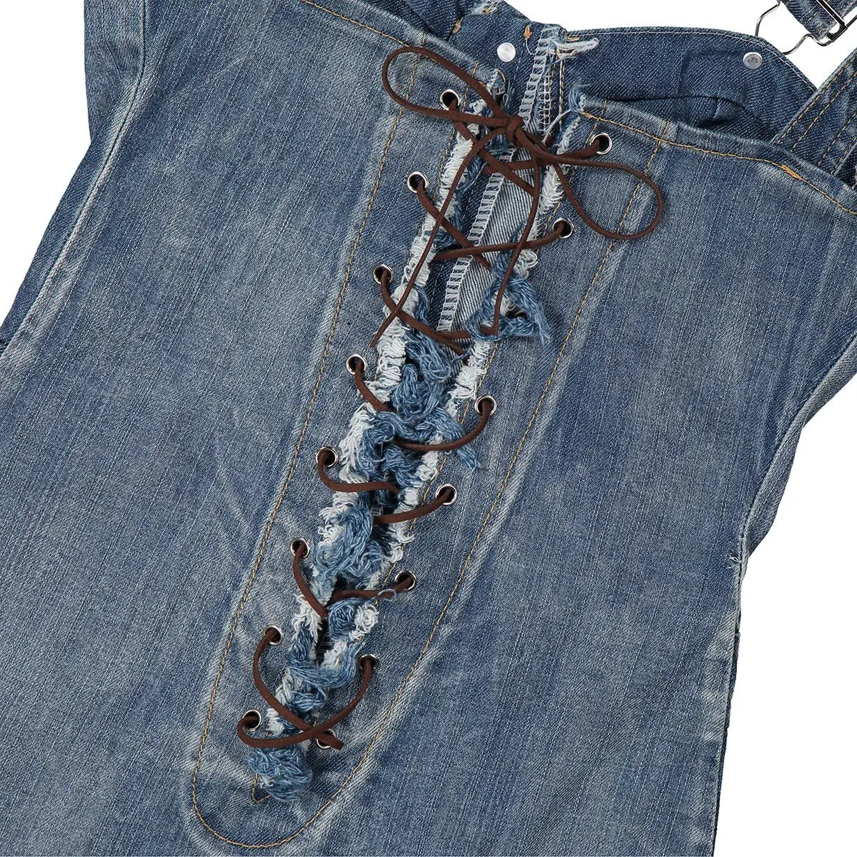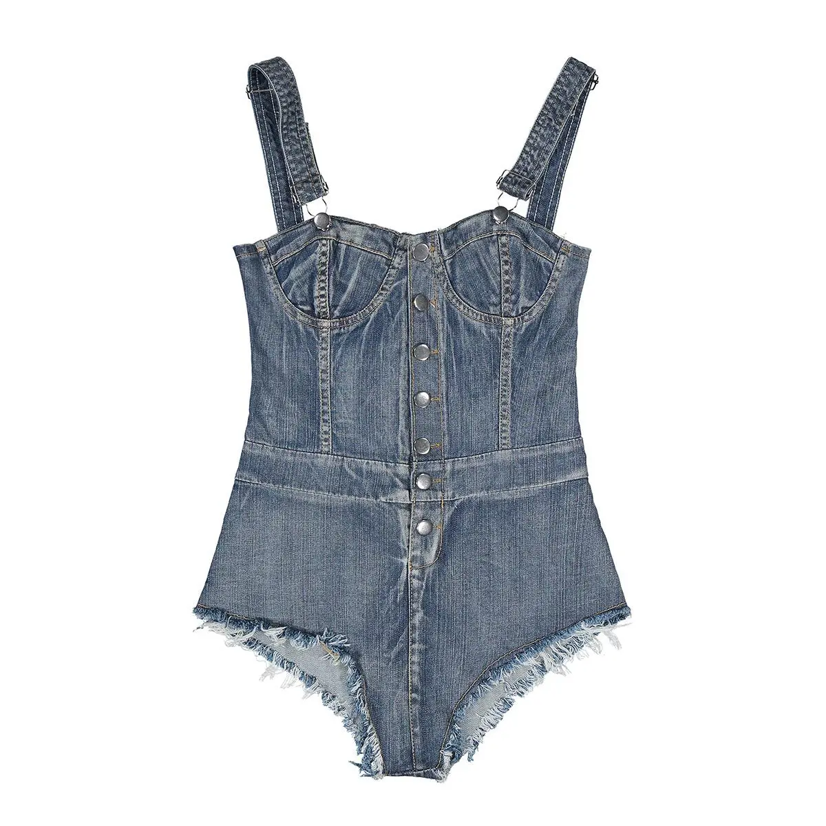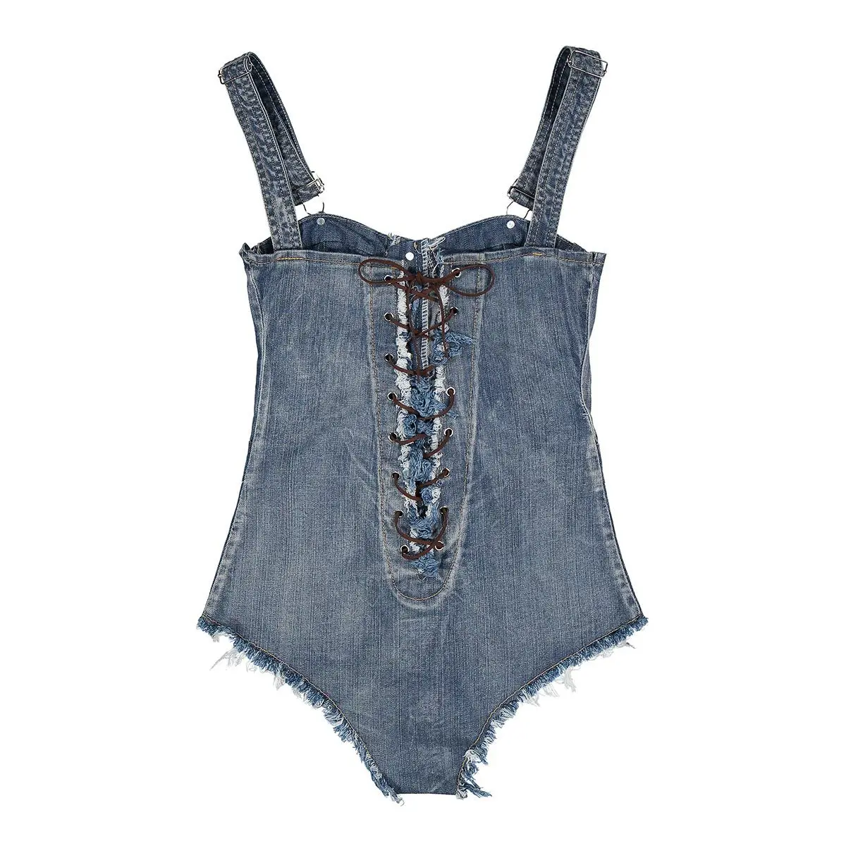 Летний комбинезон на подтяжках джинсы с низким вырезом на спине, на шнуровке, пикантные женские сценические костюмы джинсовые шорты для женщин купальник пляжный отдых тонкий комбинезон