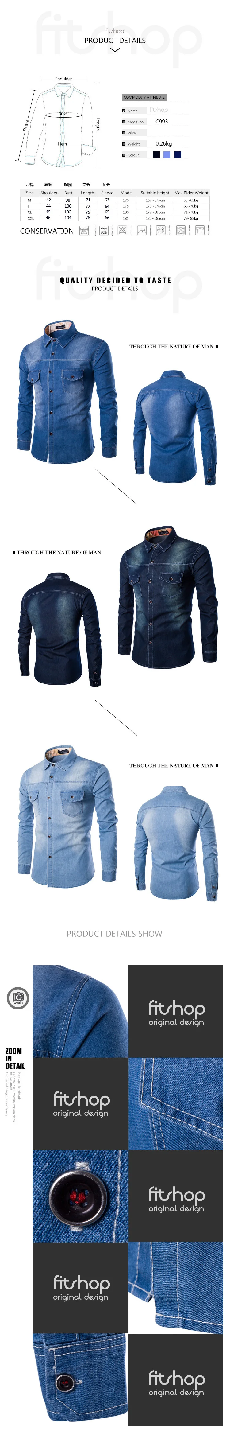 Мужская джинсовая рубашка с длинным рукавом, приталенная Повседневн...