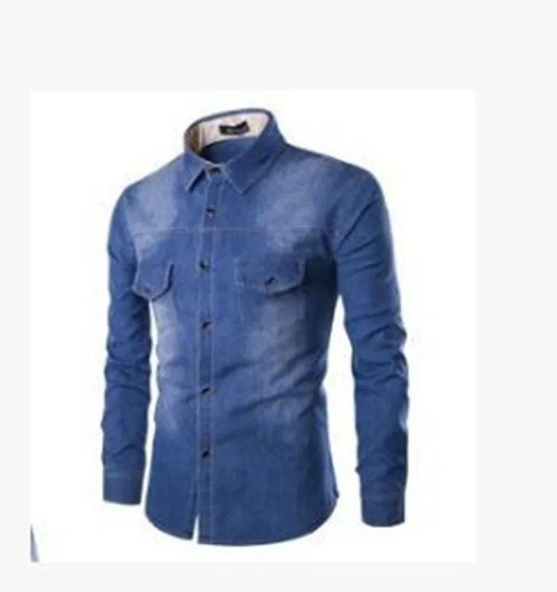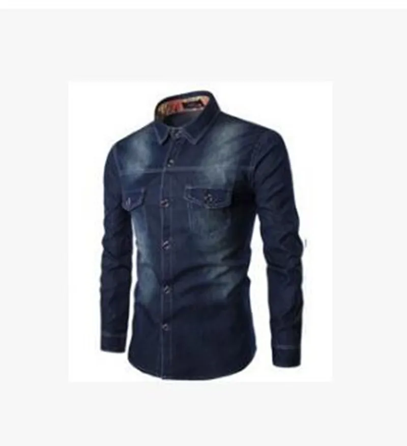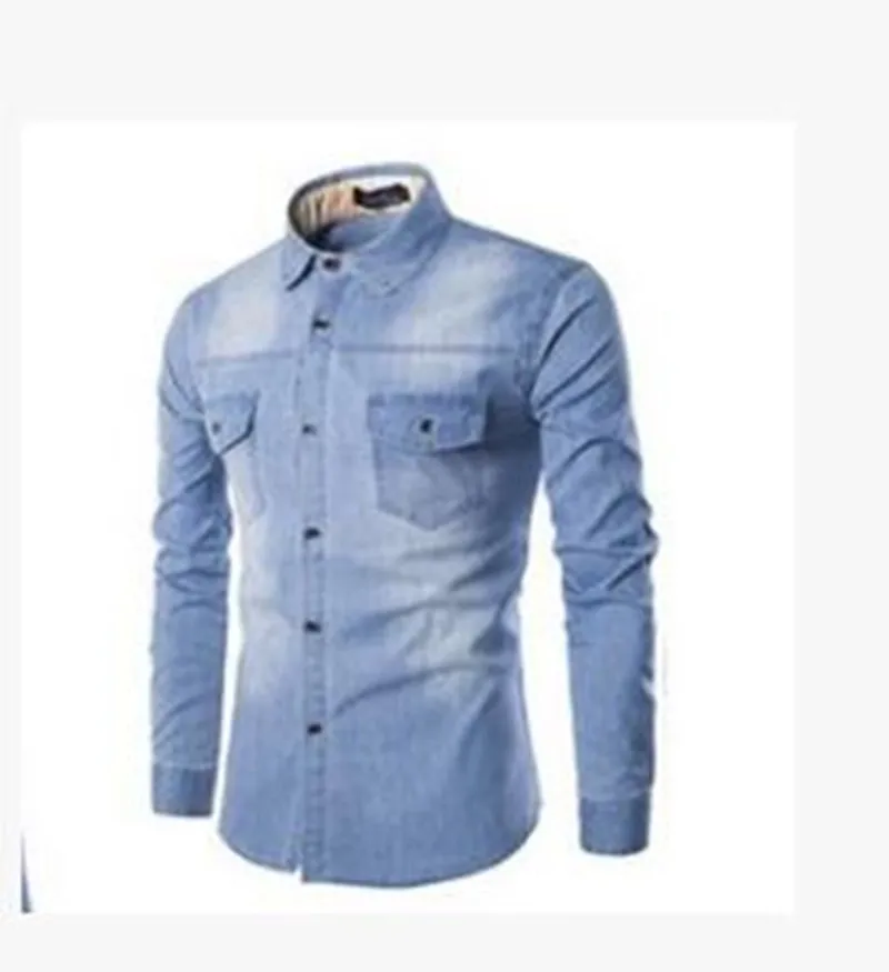2021 Мужская модная повседневная джинсовая рубашка с длинным рукаво...