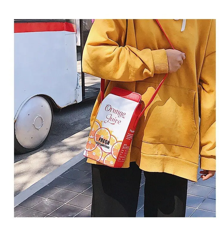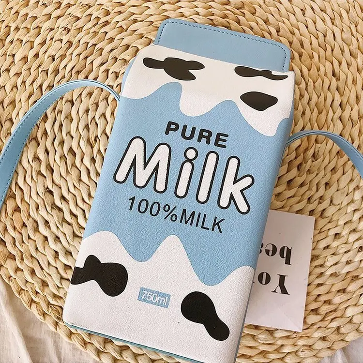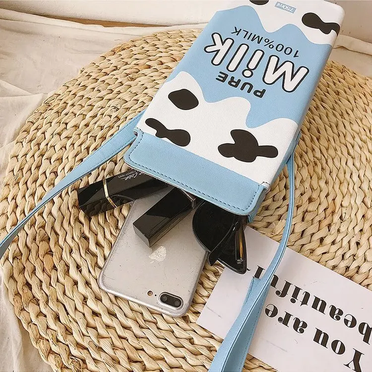 Сумка-кошелек женская, с мультяшным принтом, с фруктами, молоком, бананом, клубникой