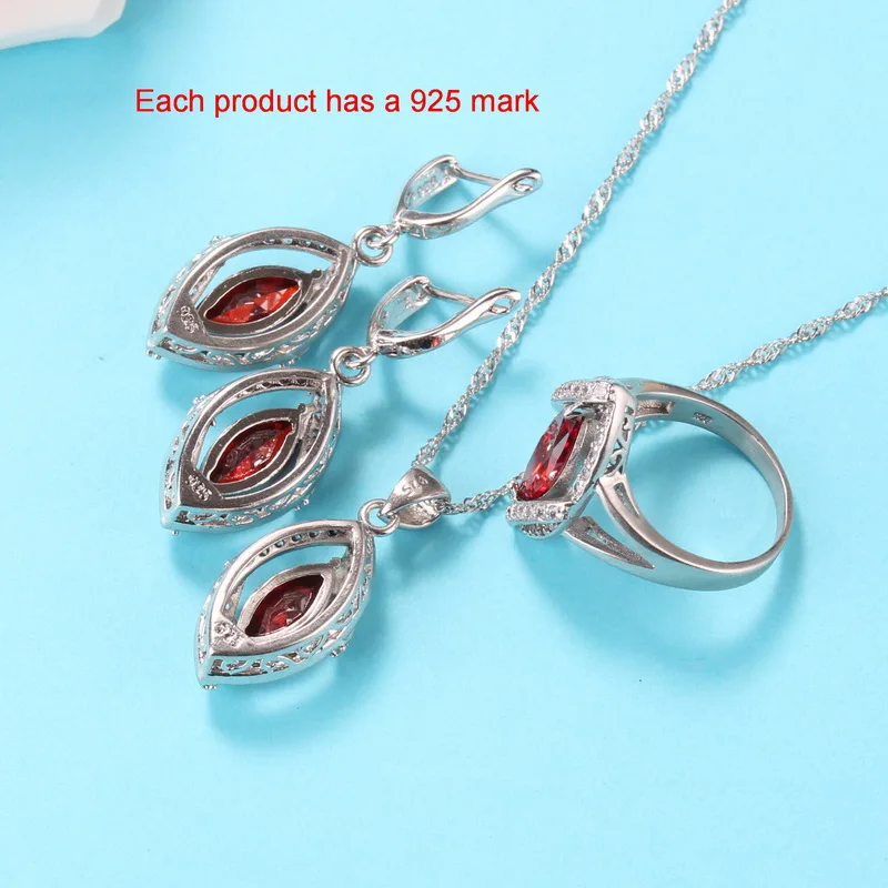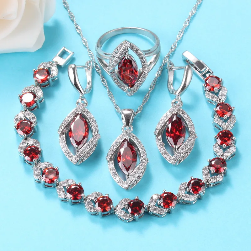 Комплекты ювелирных украшений, свадебные комплекты из красного граната, серьги с ожерельем, браслета и кольца, 5 цветов, 2020
