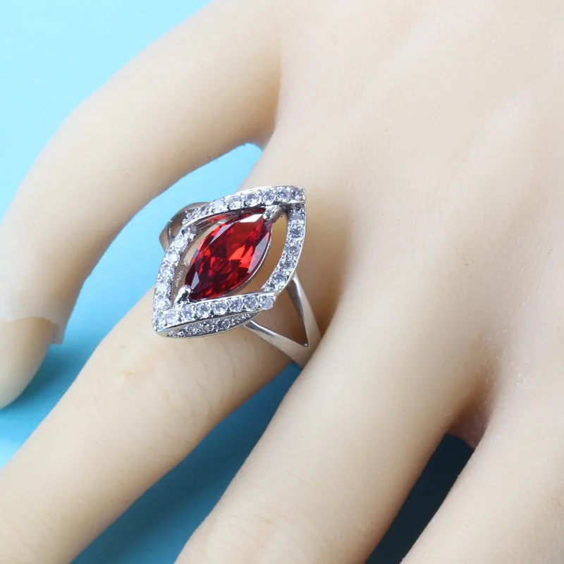 Комплект ювелирных изделий из серебра 925 пробы с гранатовым красны...