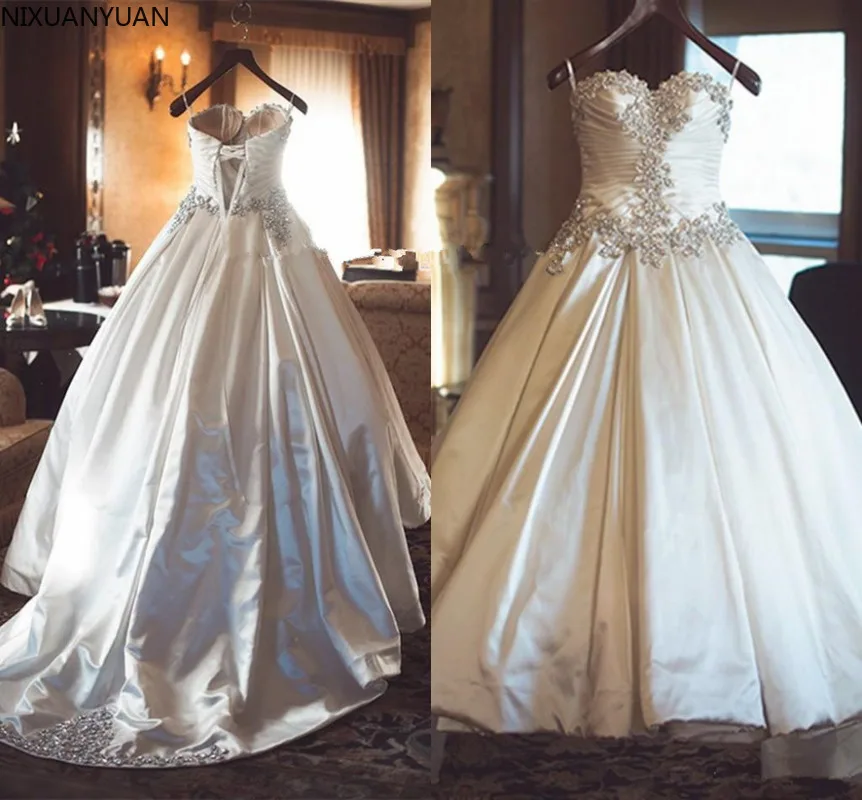 Роскошные хрустальные свадебные платья с бисером, винтажный корсет, атласное свадебное платье принцессы
