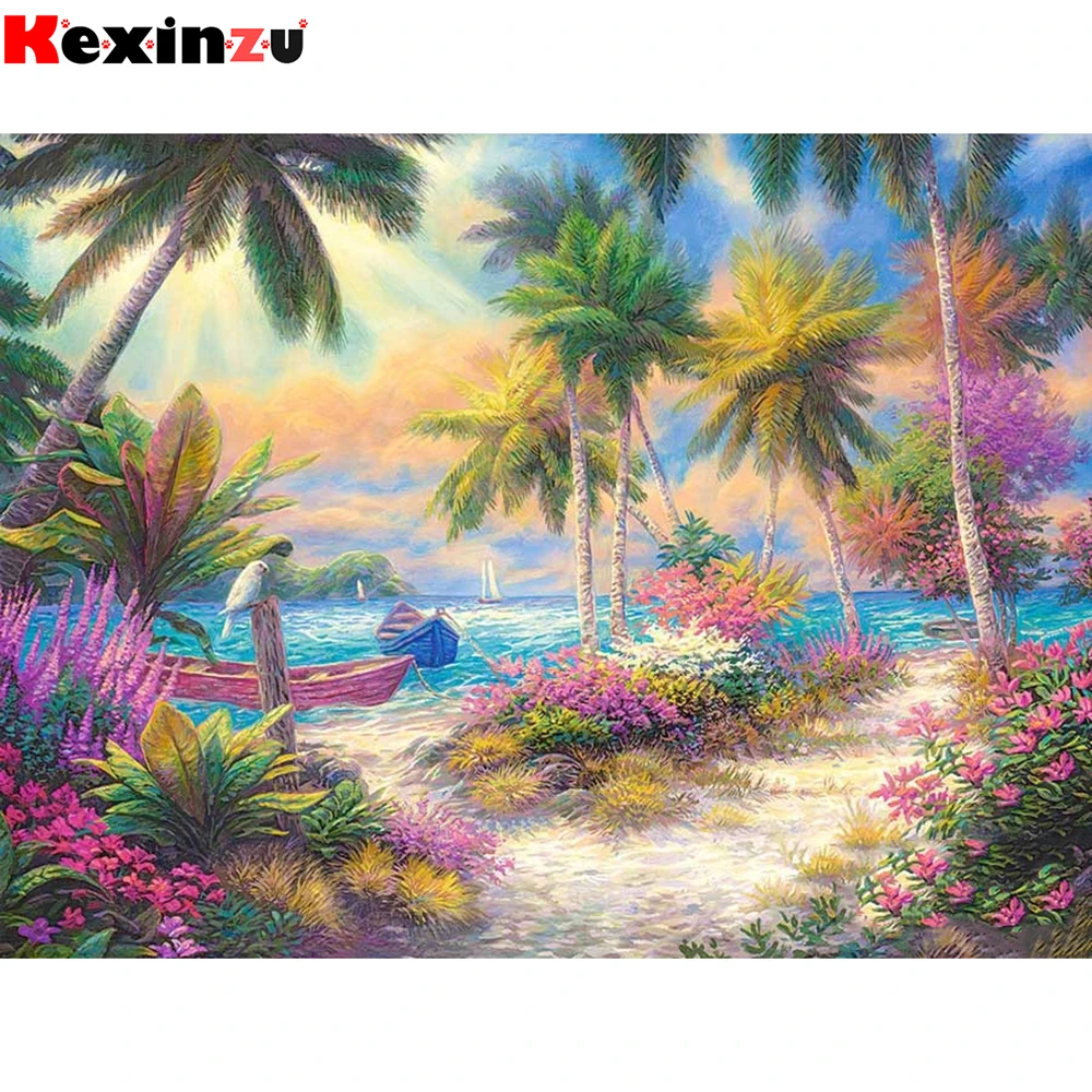 Kexinzu 5d алмазная живопись своими руками острова пальмы 100% квадратная круглая Алмазная вышивка распродажа Пейзаж Закат море домашний декор ky4330