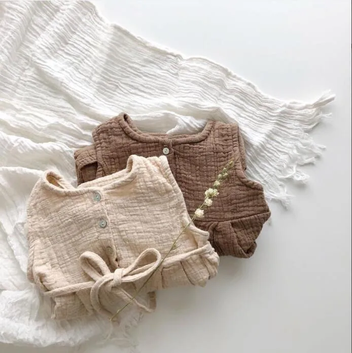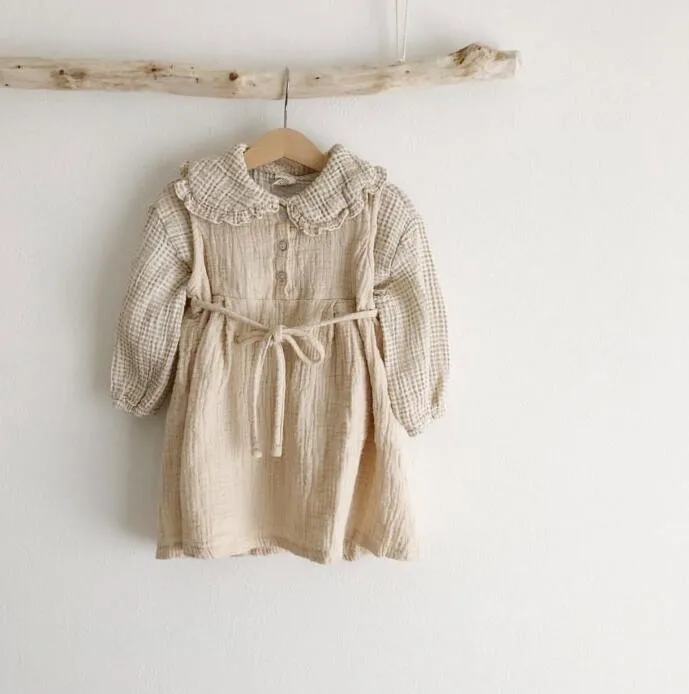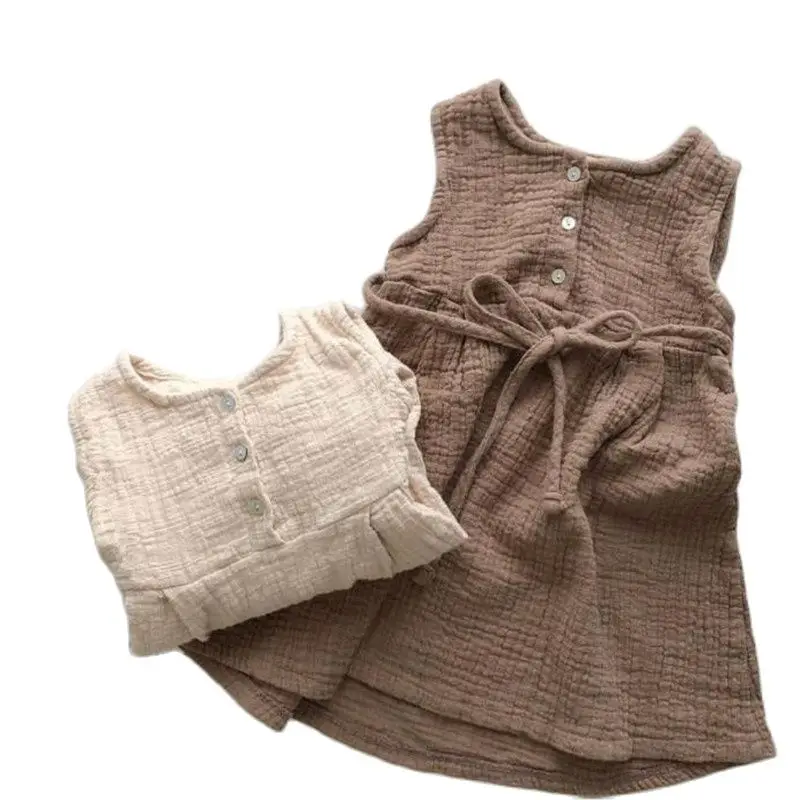 Новое льняное платье принцессы для девочек, универсальное, без рукавов, на шнуровке, В южнокорейском стиле, на весну и осень, 2020
