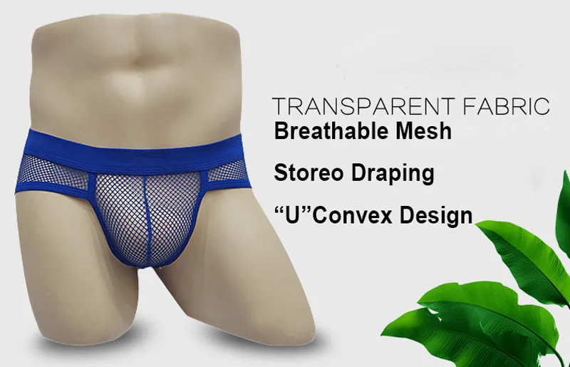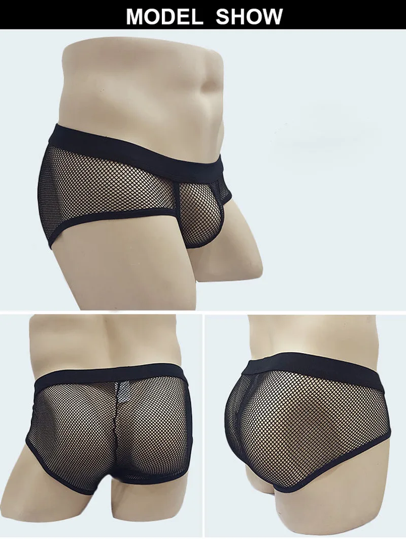 Сексуальное мужское нижнее белье, прозрачные сетчатые трусы, нижнее белье, U-образный выпуклый мешочек, дышащие трусы, ажурные мужские трусы, нижнее белье
