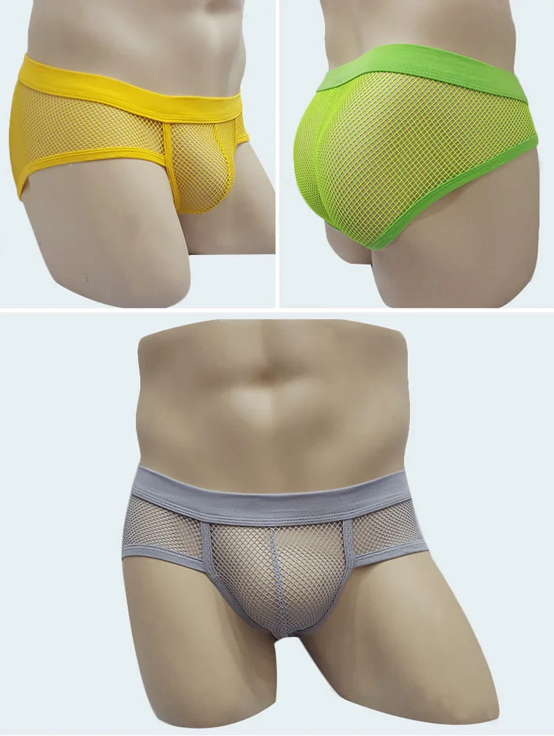 Трусы-бикини мужские, прозрачные, сетчатые, с низкой талией
