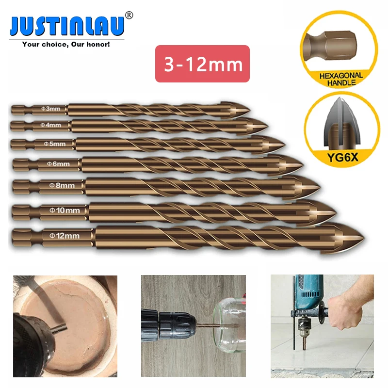 JUSTINLAU крест Шестигранная плитка биты стекло Керамика Бетон отверстие Открыватель сплав треугольное сверло размеры 3456781012 мм