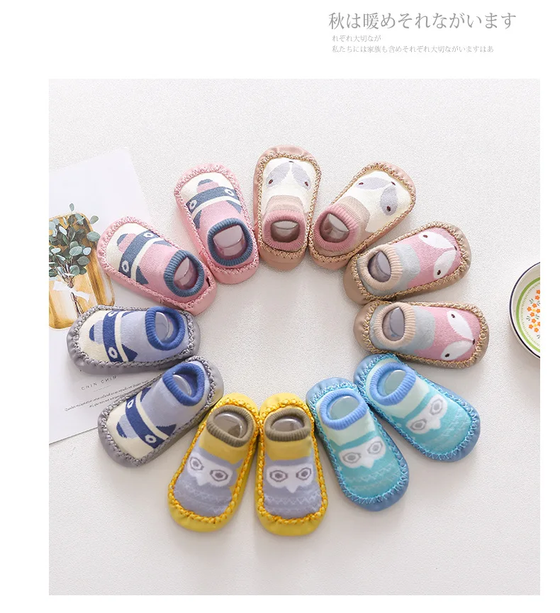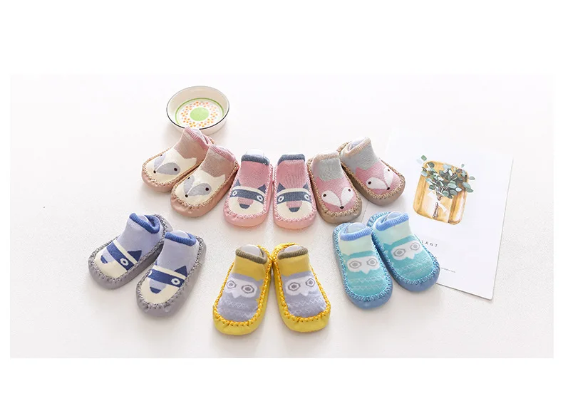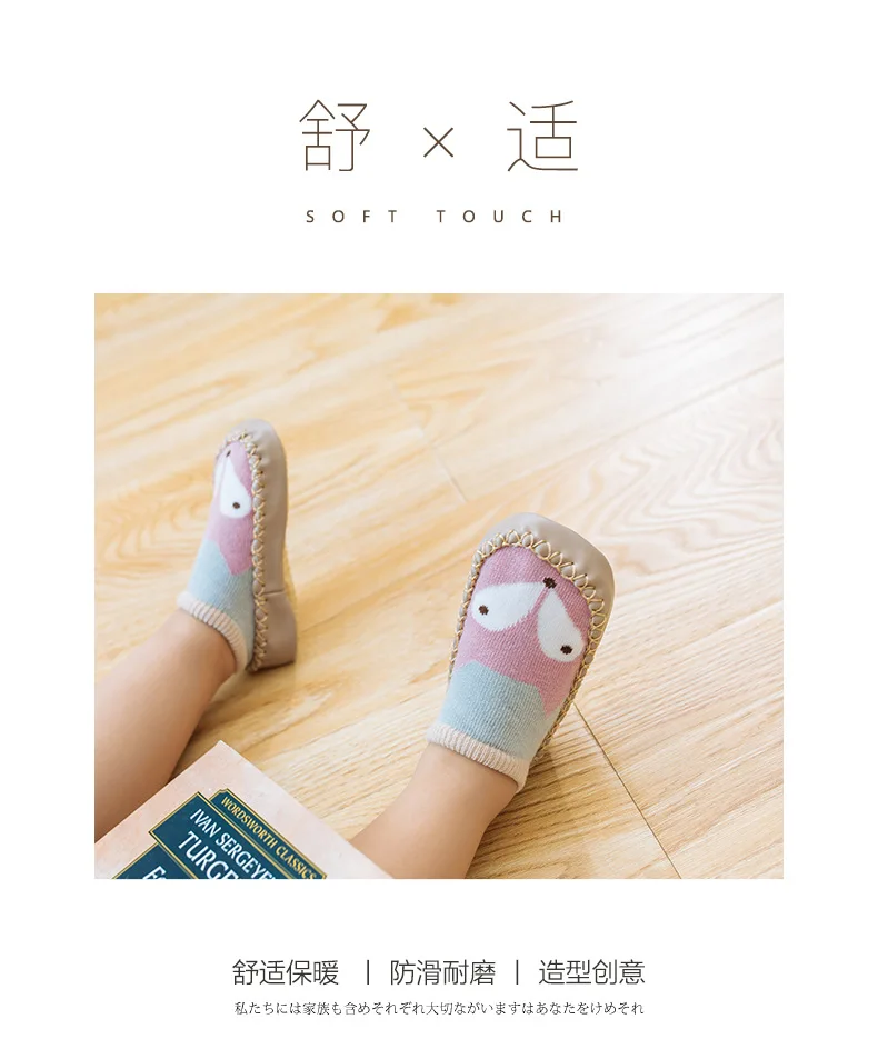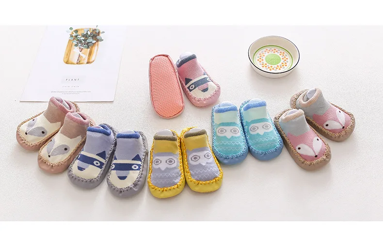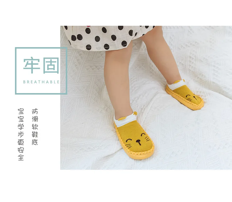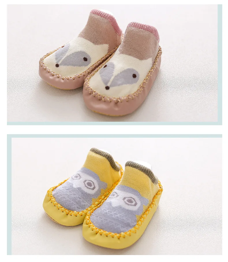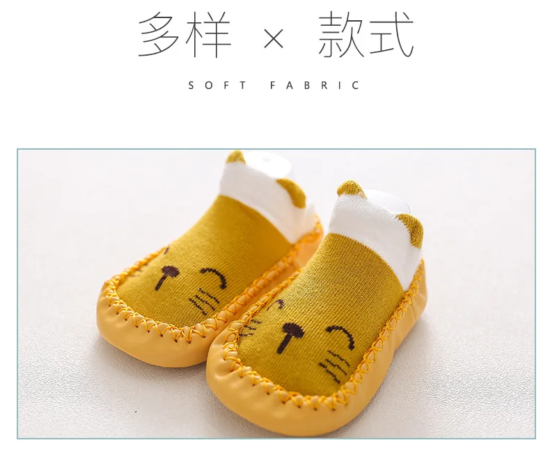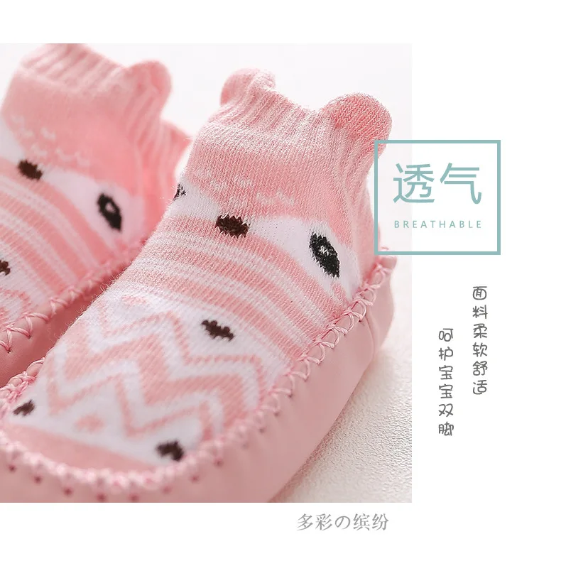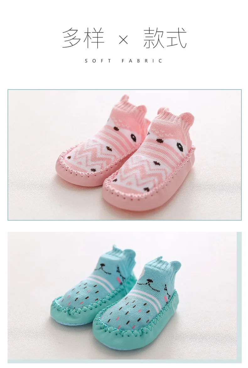 Новинка, детские носки с мультяшной кожаной подошвой, детские носки-тапочки для прогулок, Нескользящие мягкие носки с лисой, обувь для малышей