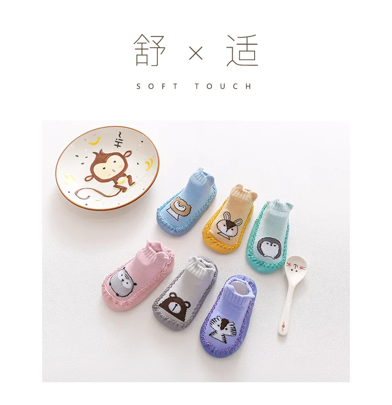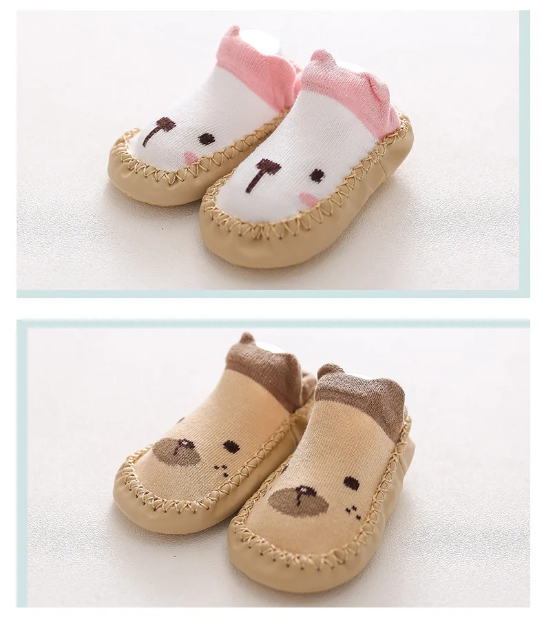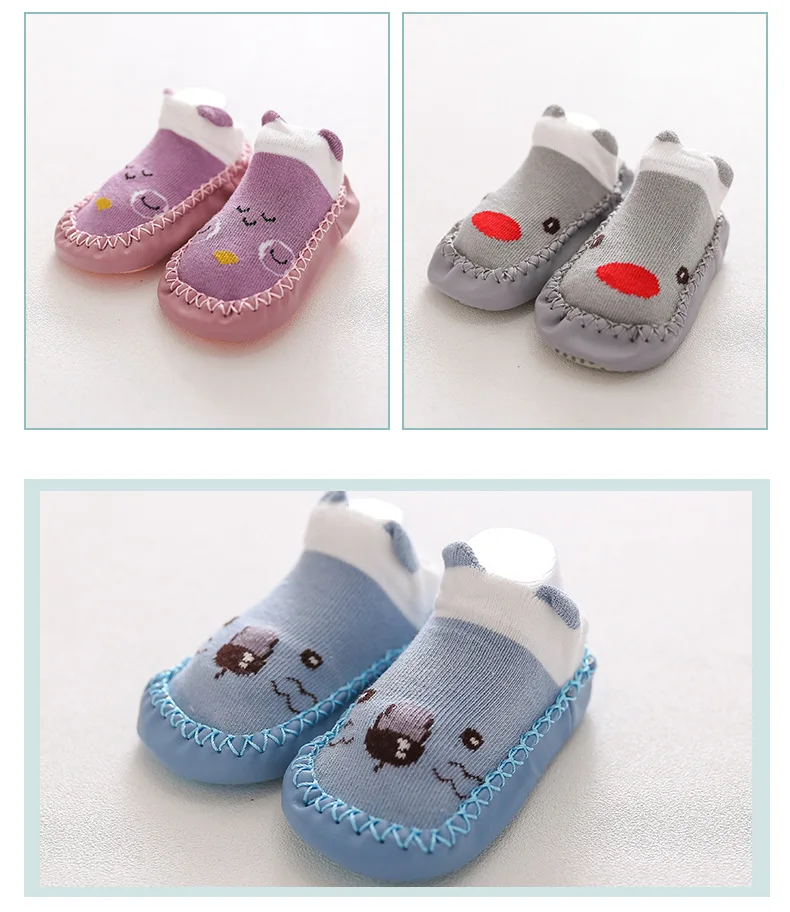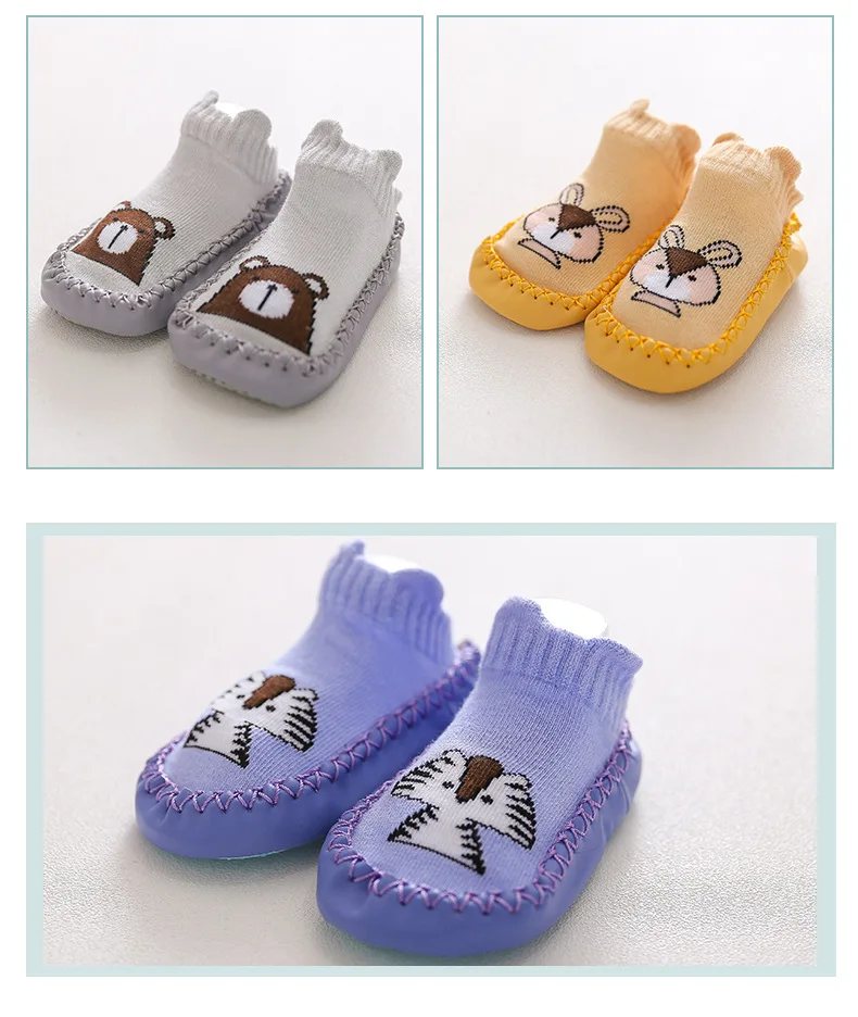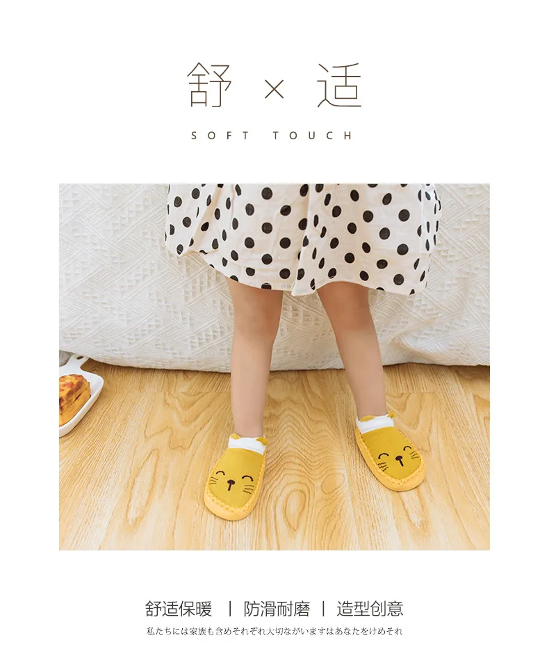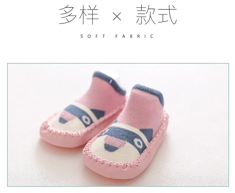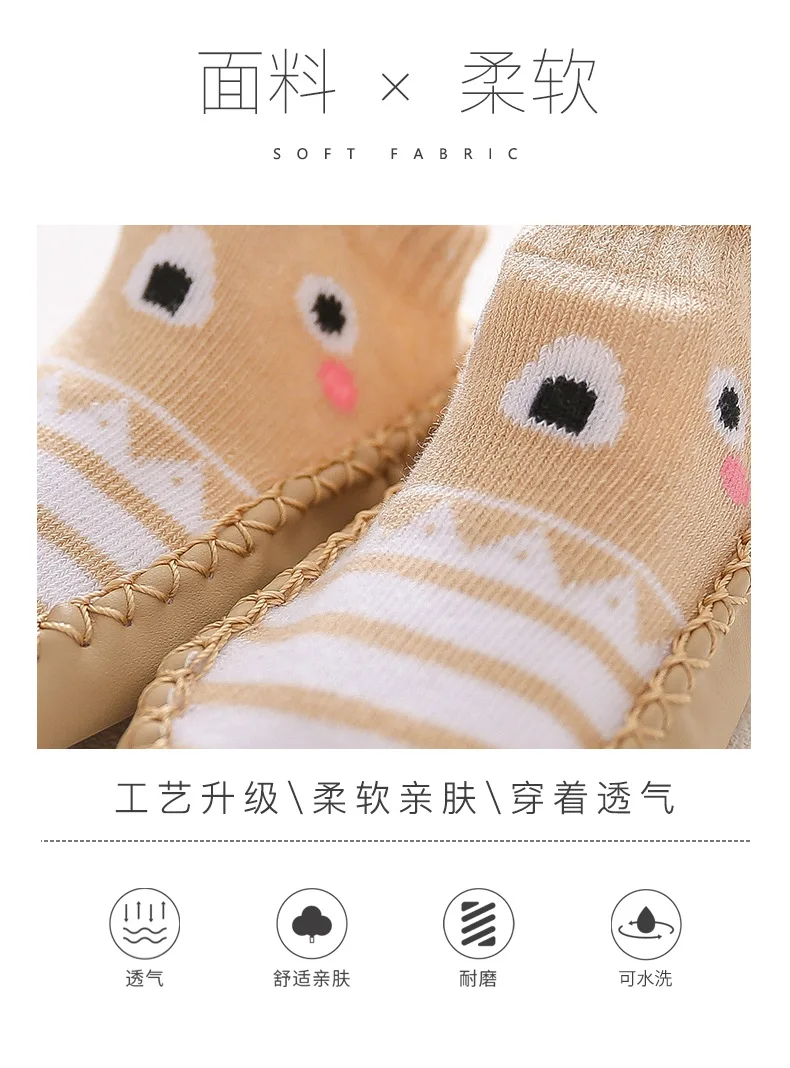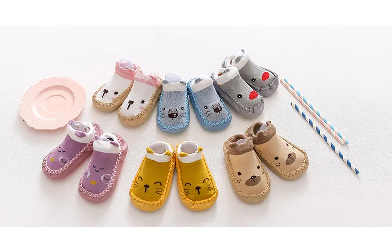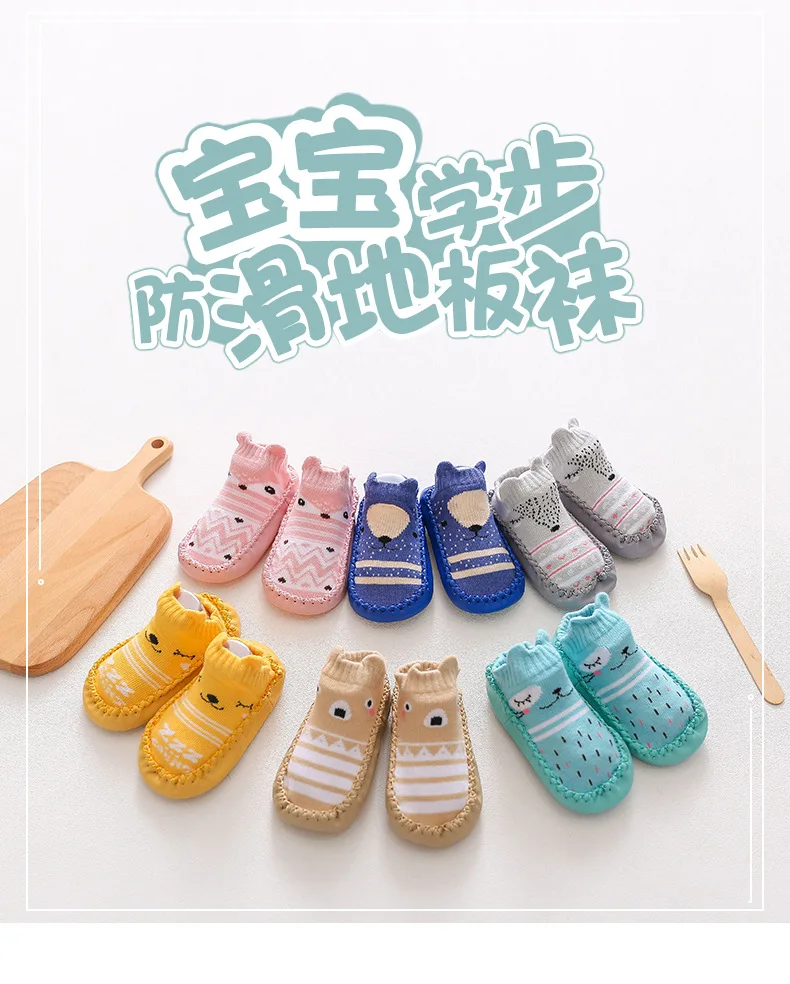 Новинка, детские носки с мультяшной кожаной подошвой, детские носки-тапочки для прогулок, Нескользящие мягкие носки с лисой, обувь для малышей