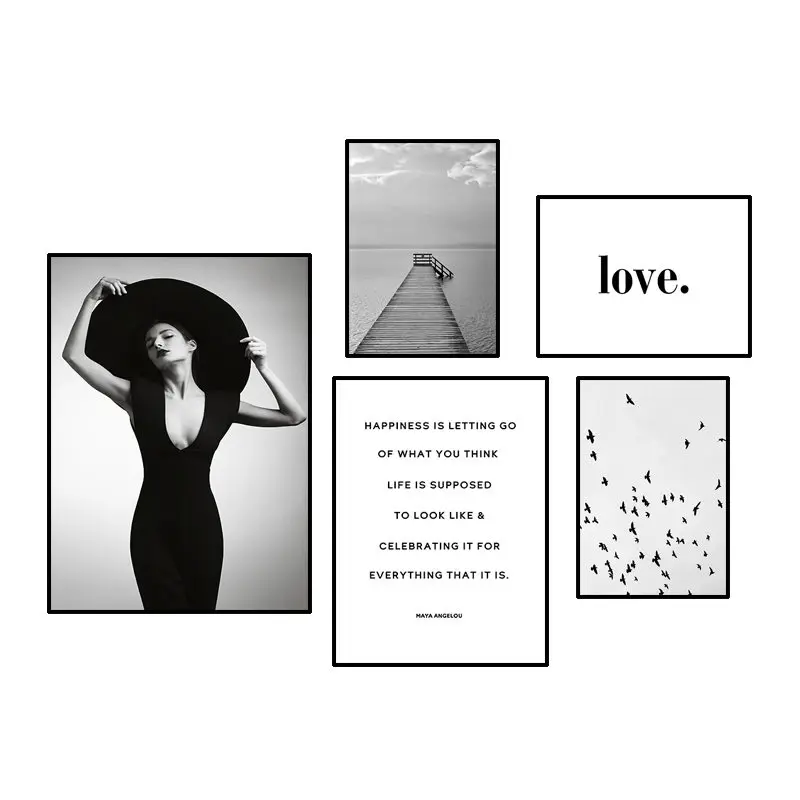 Картина с цитатой постер для скандинавской девушки, пейзаж, искусство, настенная печать, скандинавский черный, белый, деревянный мост, картина HD0017