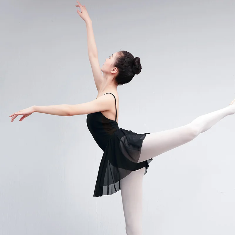 Женское балетное платье, женское платье-трико, черные танцевальные костюмы для взрослых с сетчатой юбкой